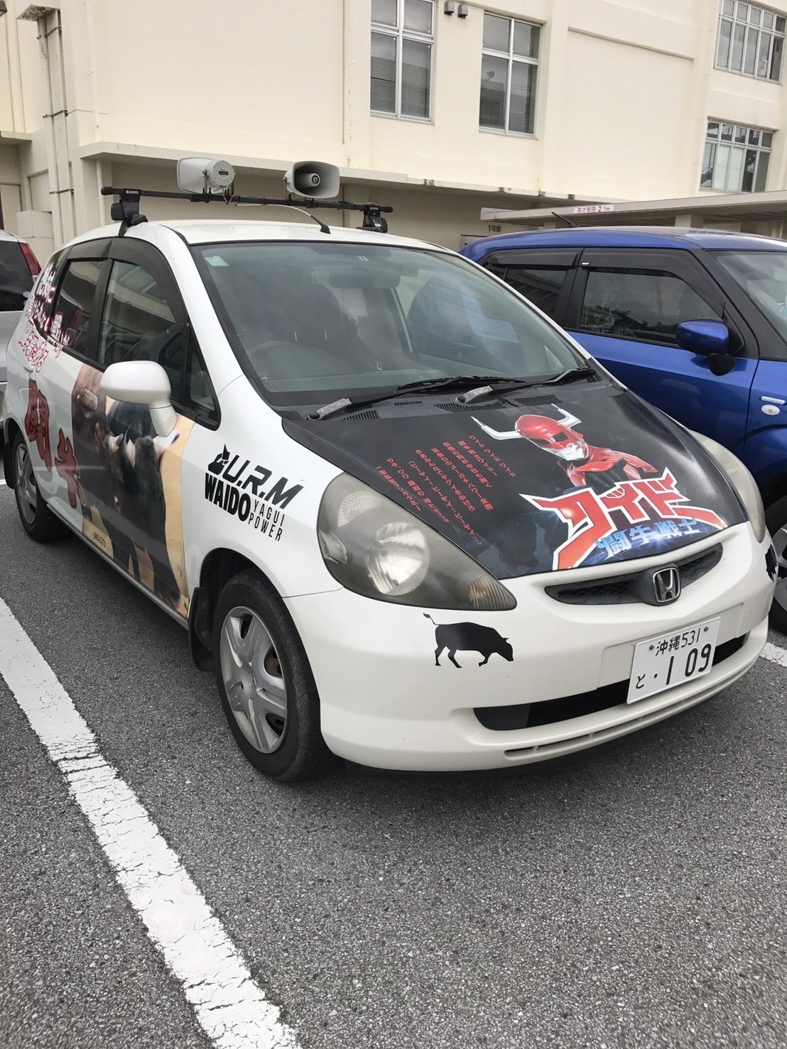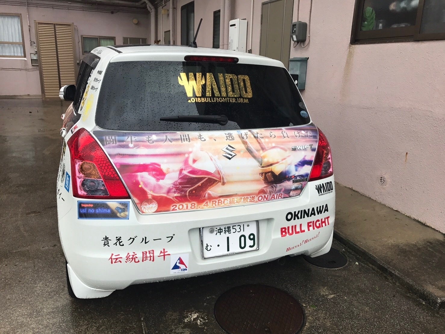 このワイドーは、『初代ワイドー』。初代は地域のお祭りやショッピングセンターのイベント、保育園への訪問や闘牛大会に出演を続け、4年間闘牛の魅力を伝え続けた。初代ワイドーと伊波大志は走り続けた。自分の車をこんなにしてまで走り続けた。
