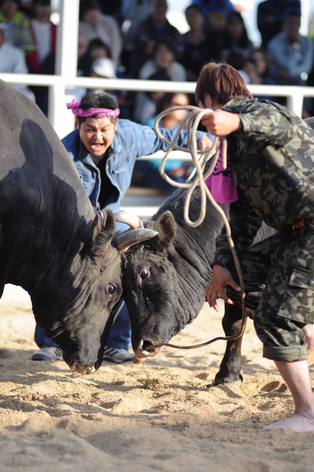 牛VS牛の大迫力の闘い!敗走させれば決着となる極めてシンプルな戦い。だが奥が深い。