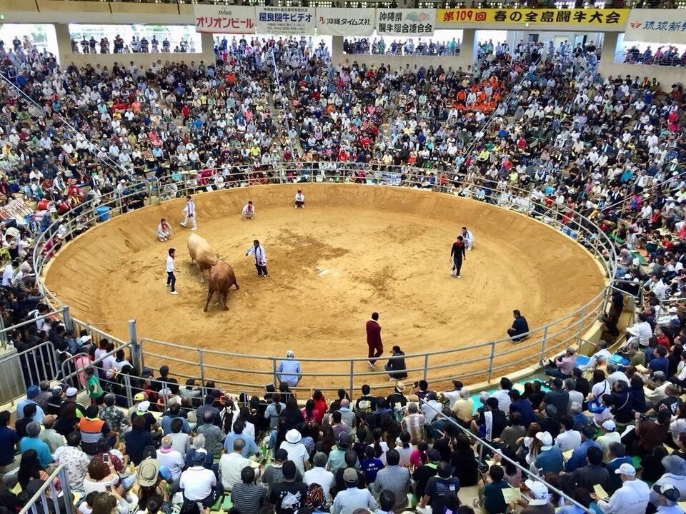 沖縄県うるま市の無形文化財「闘牛」は明治後半より地域の娯楽として誕生。第二次世界大戦中に途絶えたものの、戦後(昭和22年頃)から沖縄の大衆娯楽としてTV放映や1万の観客を集める事もあるほどの絶頂期を迎える。
