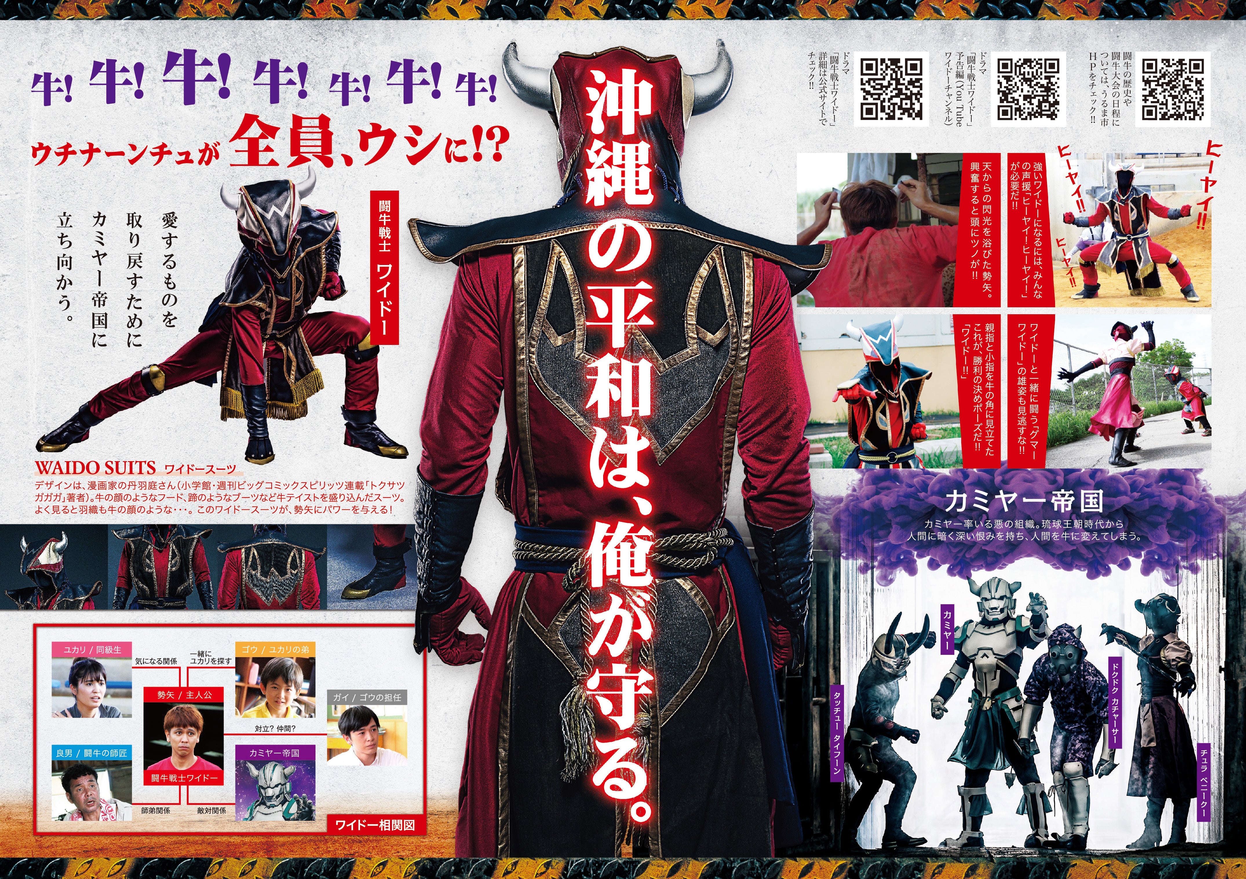 ⑦【TV番組になる】愚直にコツコツ闘牛とワイドーの広める活動を続けるなか、脚本家 山田優樹さん(※4)の目に止まりドラマ化の話が持ちかけられる。そして3年の構想の後、遂に遂に、沖縄県民に「闘牛戦士ワイドー」が届けられた!!