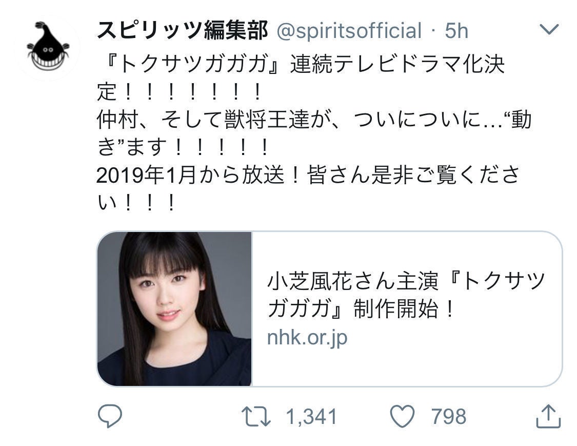 トクサツガガガは、2019年1月18日(金)よりNHKで実写ドラマも決定!ますます話題になるのは間違いない作品ですので知らない方は要チェック♪