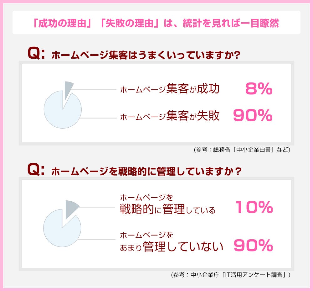 つまり、ホームページ集客が「成功するか?」「失敗するか?」の差は、