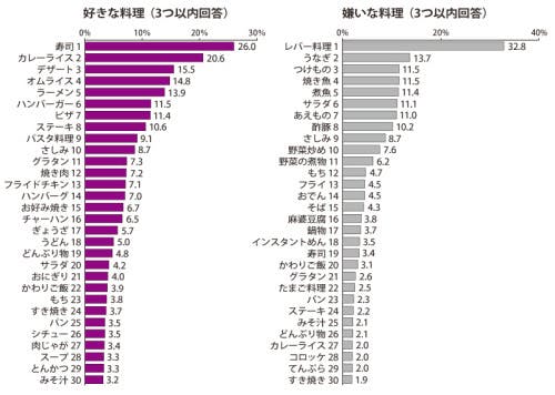 小中学生の嫌いな食べ物第一位=肝料理・第二位=うなぎという、