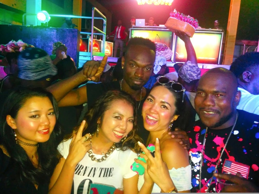 レゲェーのパーティーに行けば、有名なレゲェーの歌手・ダンサーにだって気軽に会えちゃうのがジャマイカ!(上はダンサーのボイジーと、下の写真で鉢巻を巻いているのは、レゲェー歌手のニンジャマン)