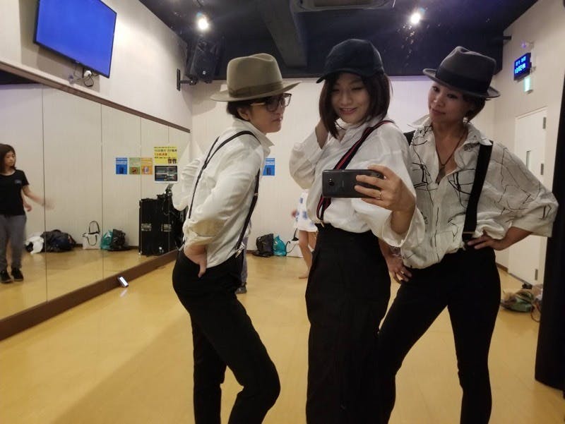 男性パート、できた! 2回目なのにすごくない!? プロダンサーが躍るフリを先に覚えて動画アップしてくれた、あこりん。これも才能ね。あこりんは、お子様ふたりを連れて、わざわざ駆け付けた。