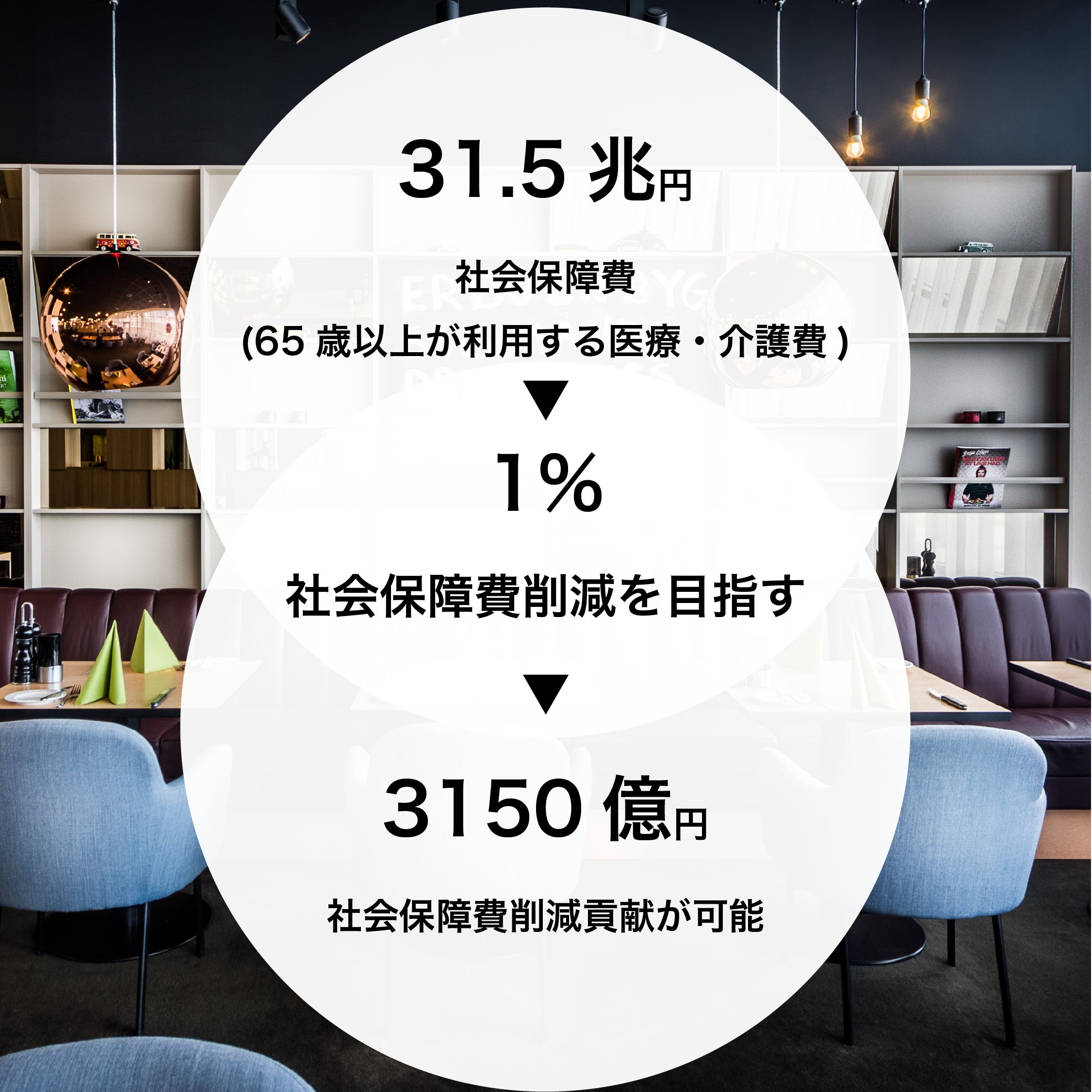 社会保障費が膨らみ続け、国が提供する社会保障制度だけでは、生活の質の向上が得られなくなってきています。この社会課題は高齢者だけではなく、これから未来を担っていく子供たちや自分たち自身もその例外ではなく自らも生活の質を向上させていく取り組みを行っていかなくてはならない状況にあると私たちは考えています。