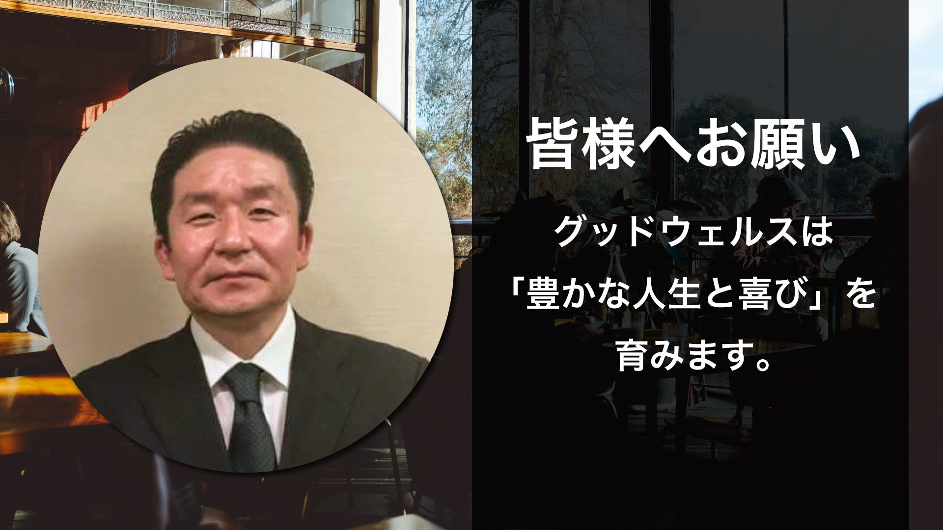はじめまして、一般社団法人グッドウェルス・代表理事を努めています、石谷康人です。