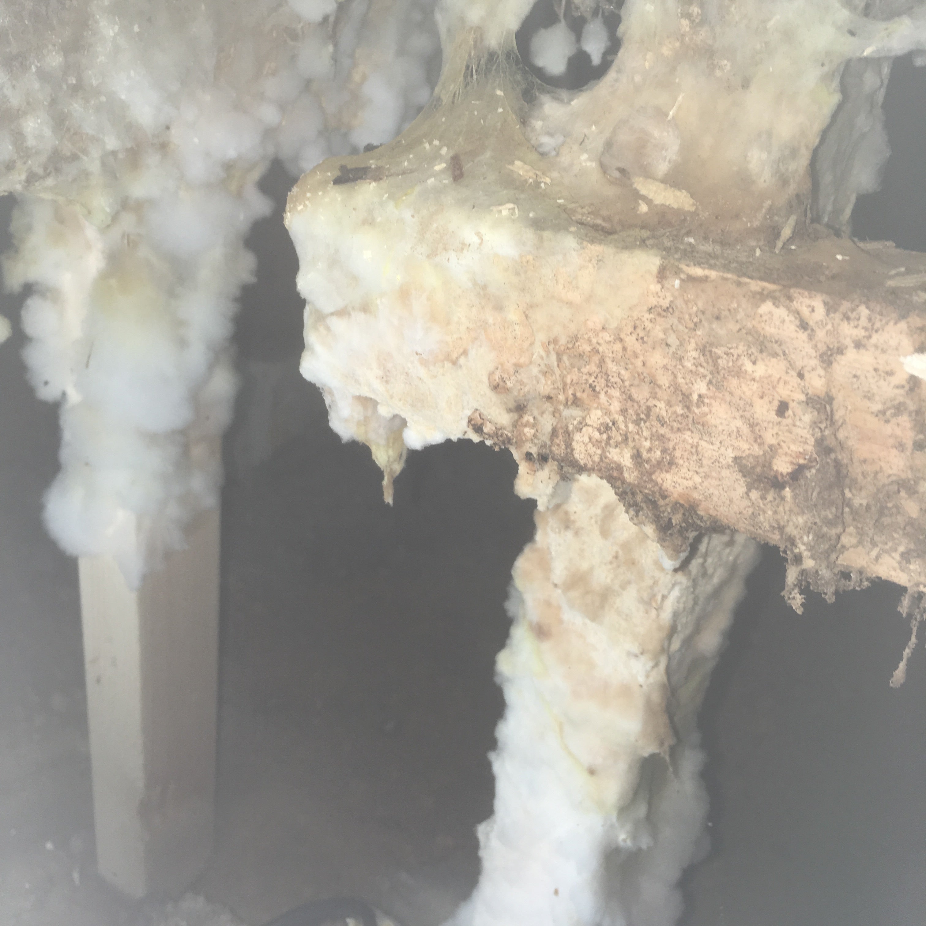 今にも崩れそうな、マットの下の床の様子を少しお見せします。