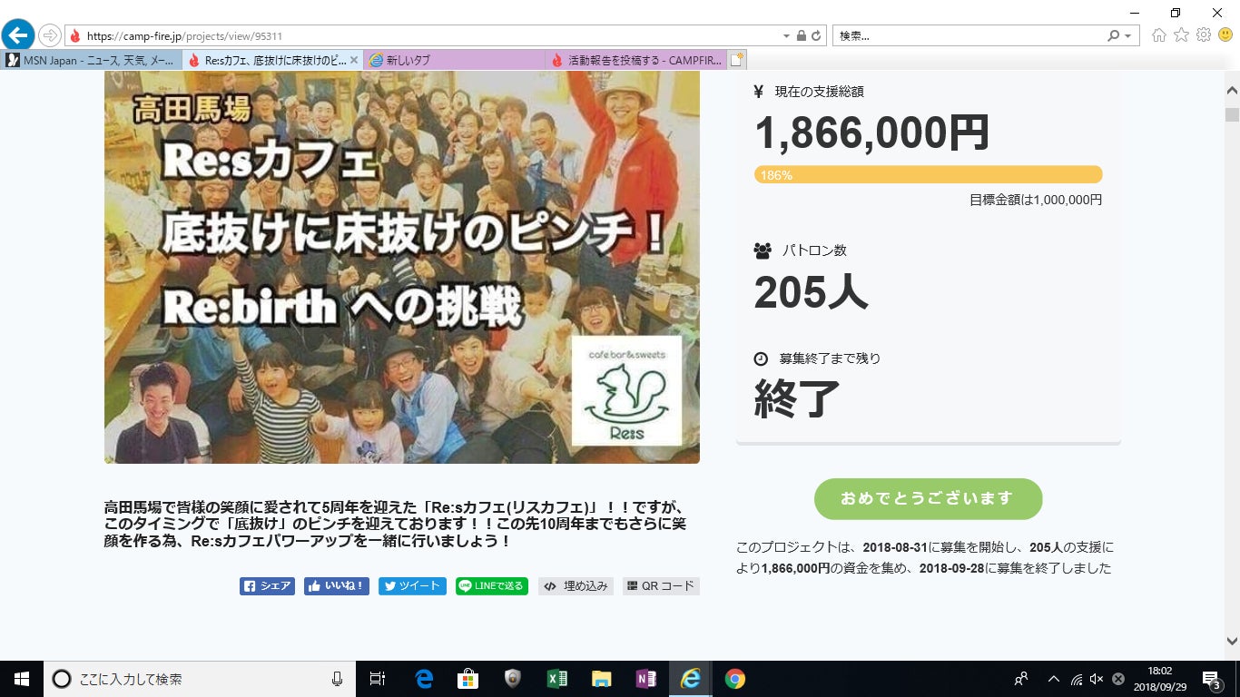 このプロジェクトは、2018/08/31に募集を開始し、 205人の支援により 1,866,000円の資金を集め、 2018/09/28に募集を終了しました