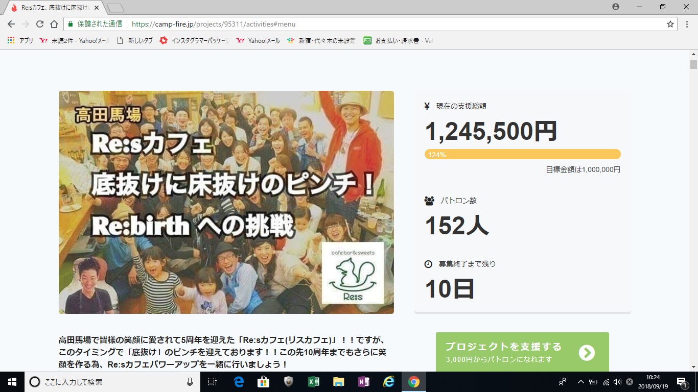 おかげさまで残り10日を切ってネクストゴールまで45500円となりました!