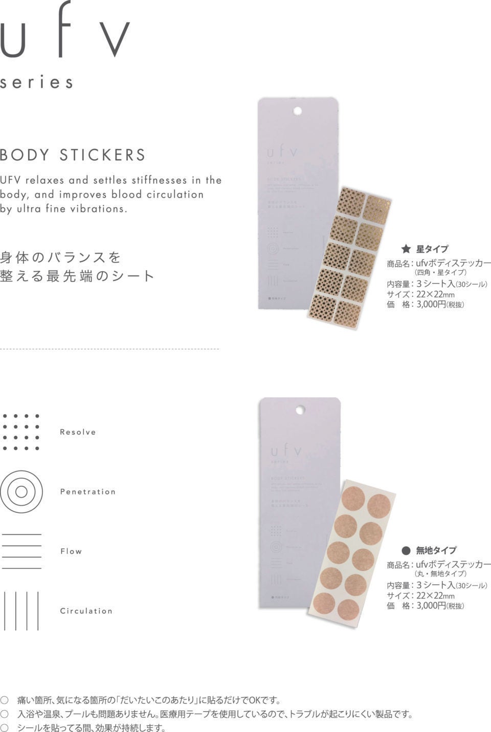 身体のバランスを整えるUFVボディステッカーの新品を差し上げます。星タイプか無地タイプかお選びいただけます。送料込み(レターパックライト)
