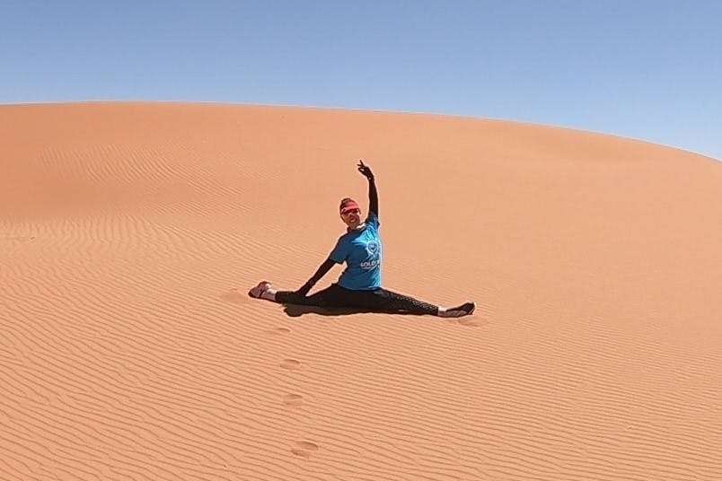 どん底にいた頃、マラソンに出会って元気になり、家族や友人が喜んでくれました。マラソンがきっかけで、フィットネスインストラクターになり、体を動かす楽しさをお伝え出来るようになりました。サハラ砂漠マラソンを完走した途端、おばあちゃんになっても、とんでもないところを走り続けている夢が出来ました。