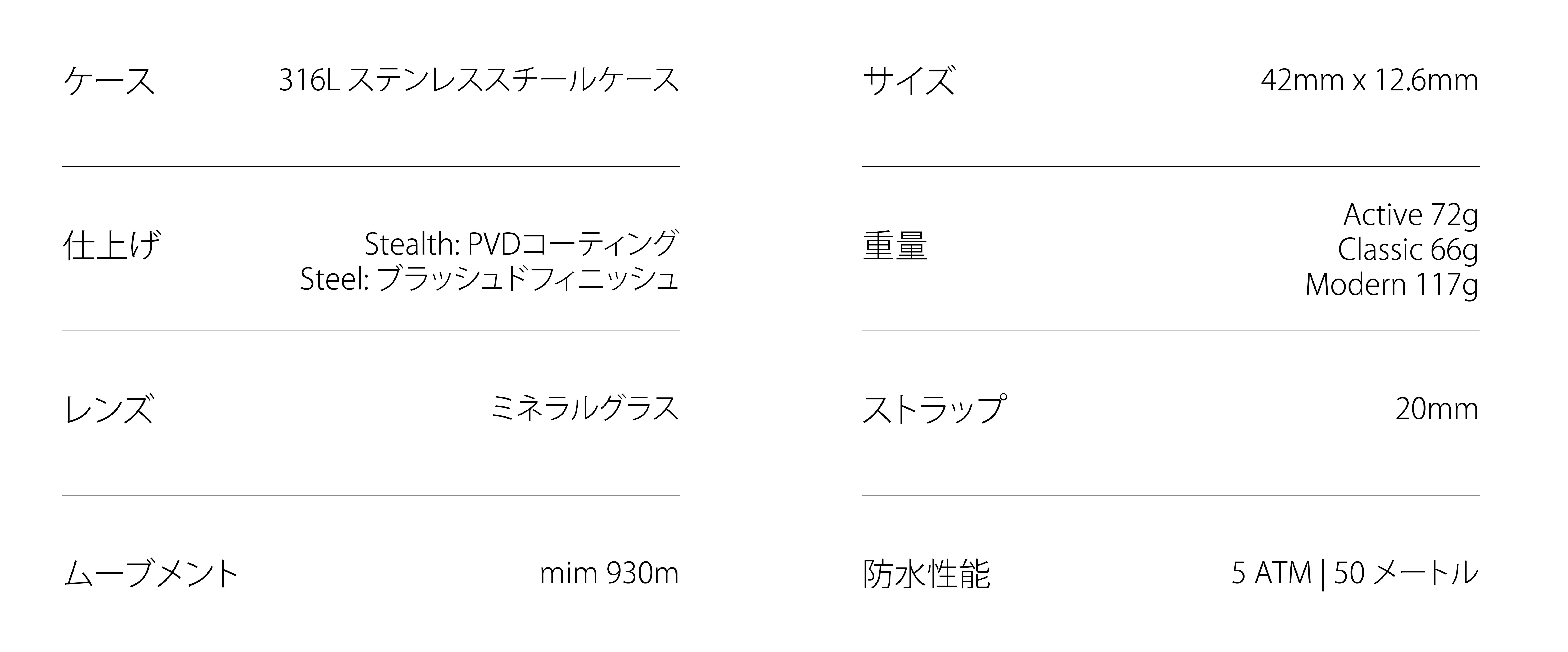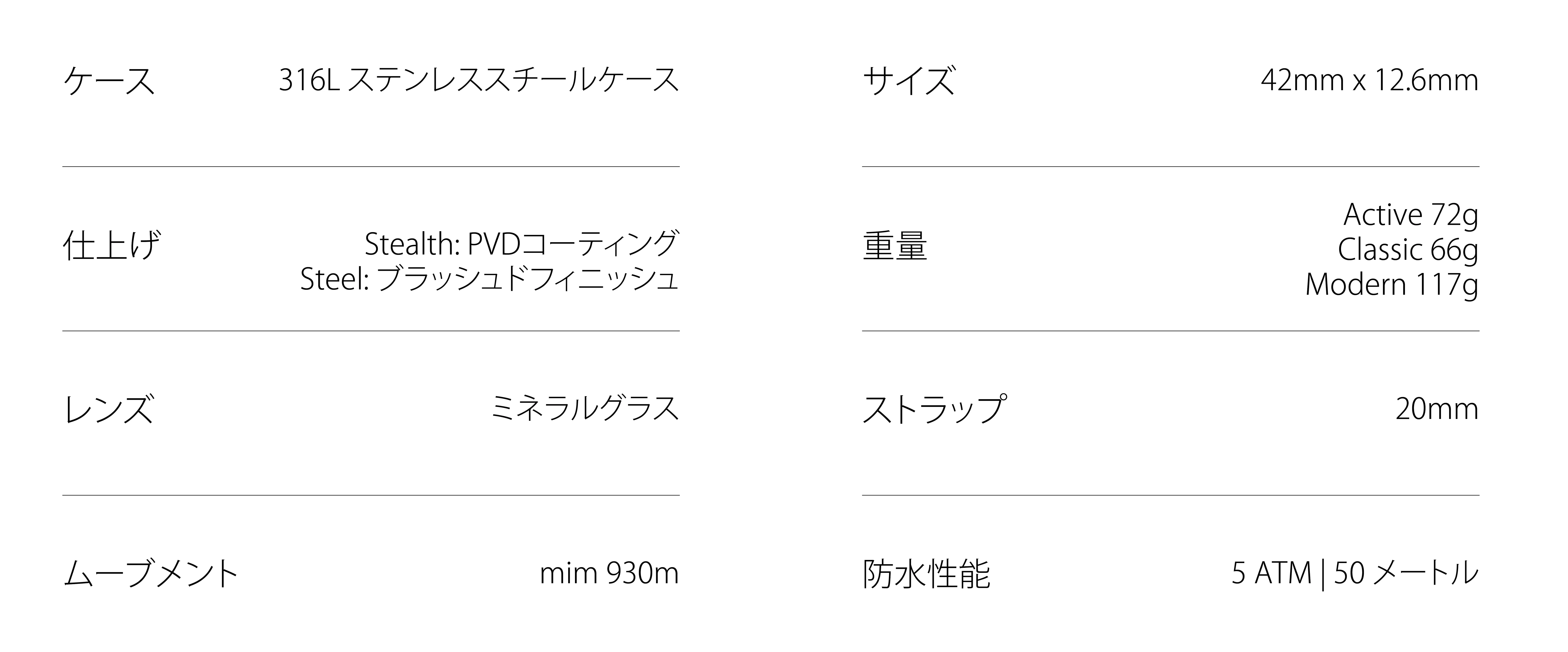 ーブメントはデジタル制御のステップモーターを搭載し、チップセットから受信したパルス信号で、mim Xとスマートフォンの自動同期やボタンによる時刻調整を可能にしています。