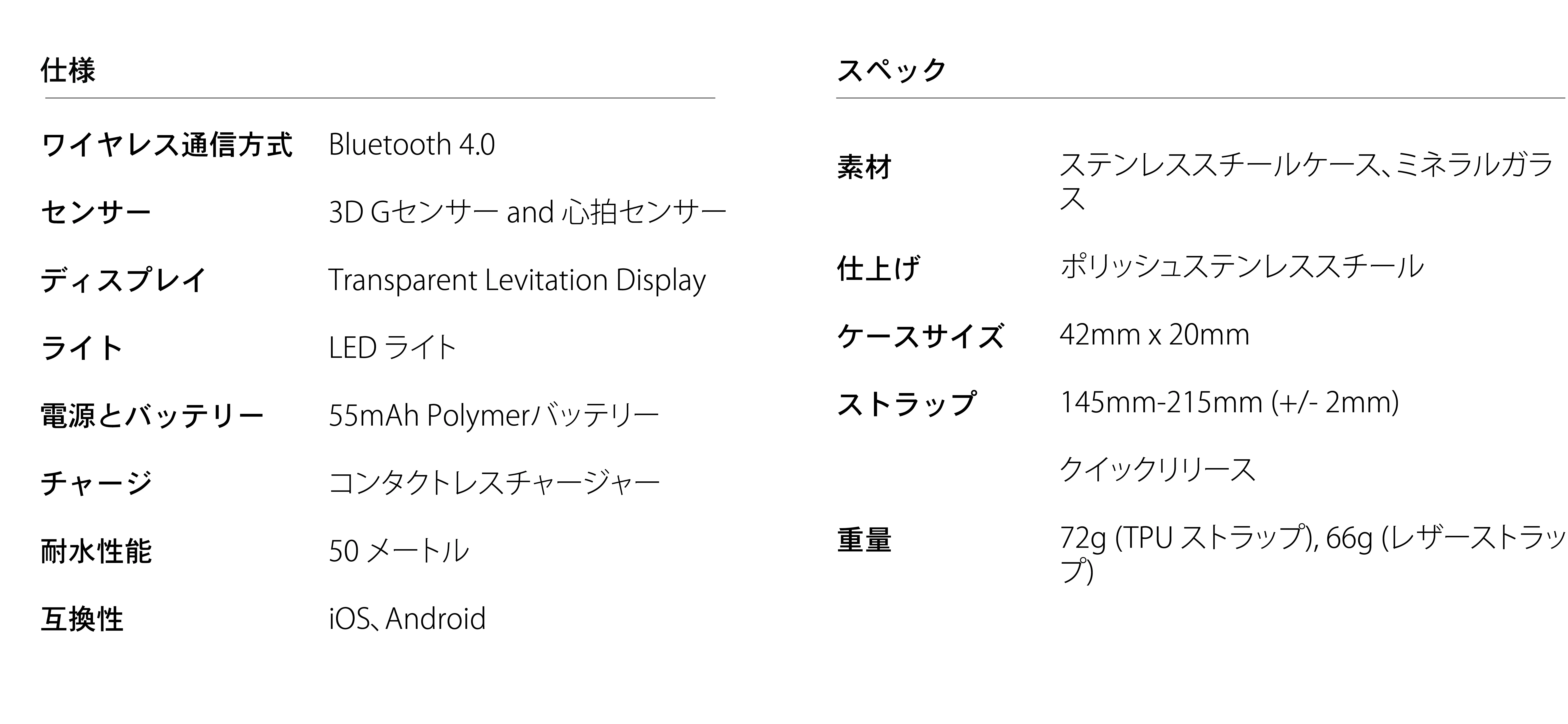 スイッチオンすると情報がガラス面に表示され、時計針が邪魔することはありません。使用しない時は、完全な透明状態になります。このディスプレイは、屋外や強力な光の下でもはっきりと視認できます。さらにバッテリ効率が、従来型ディスプレイよりも大幅に向上しています。