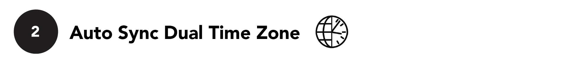 TDL技術の利点を活かしたmim Xは、2つのタイムゾーンを別個に表示可能。一方をディスプレイ上に、他方を針で表示します。また、mim X は現在のタイム ゾーンの検出が可能で、自動的に時刻調整を開始します。時刻の自動同期の開始にも、ディスプレイか針を選択できます。