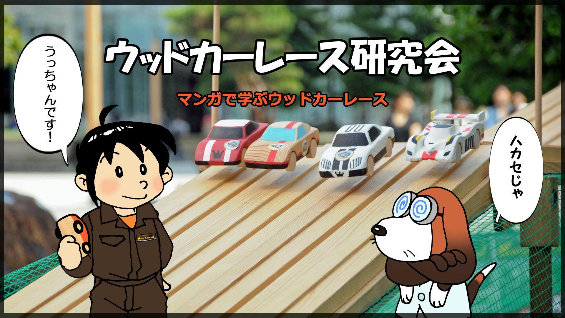 ウッドカーレースの楽しさやチューニングなどのテクニックをわかりやすく説明するために、ウッドカー チャンピオンシップ!のサイトやフェイスブックページで、「ウッドカーレース研究会」という4コママンガを公開しています。