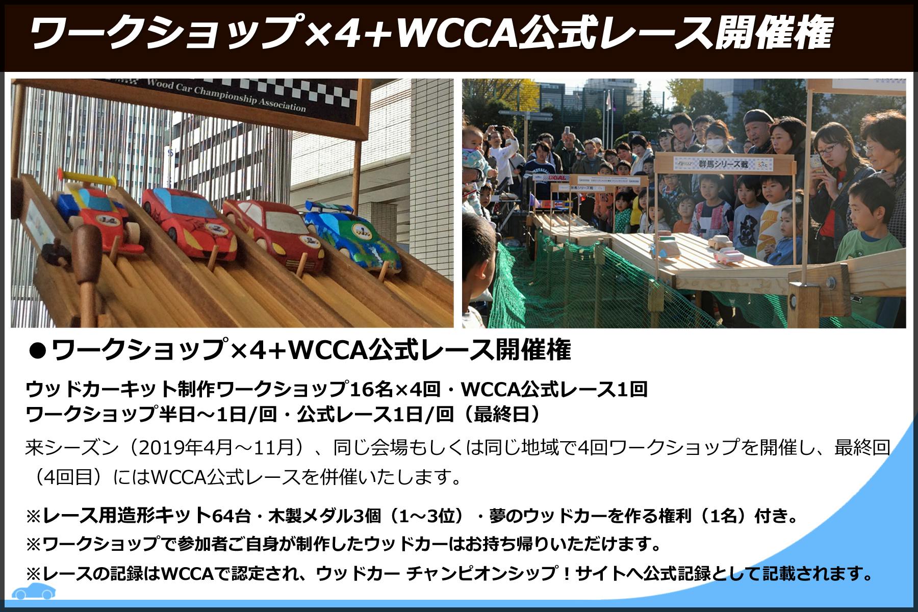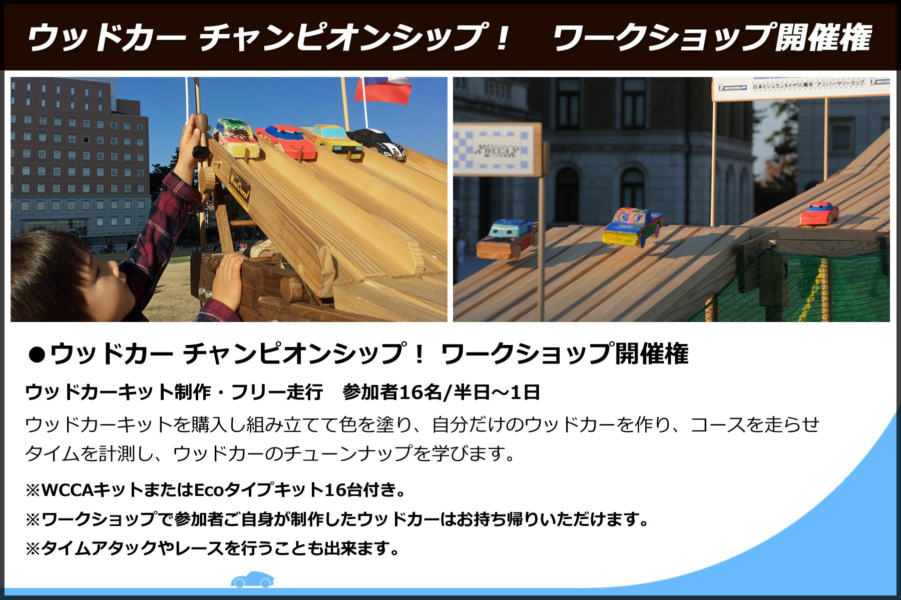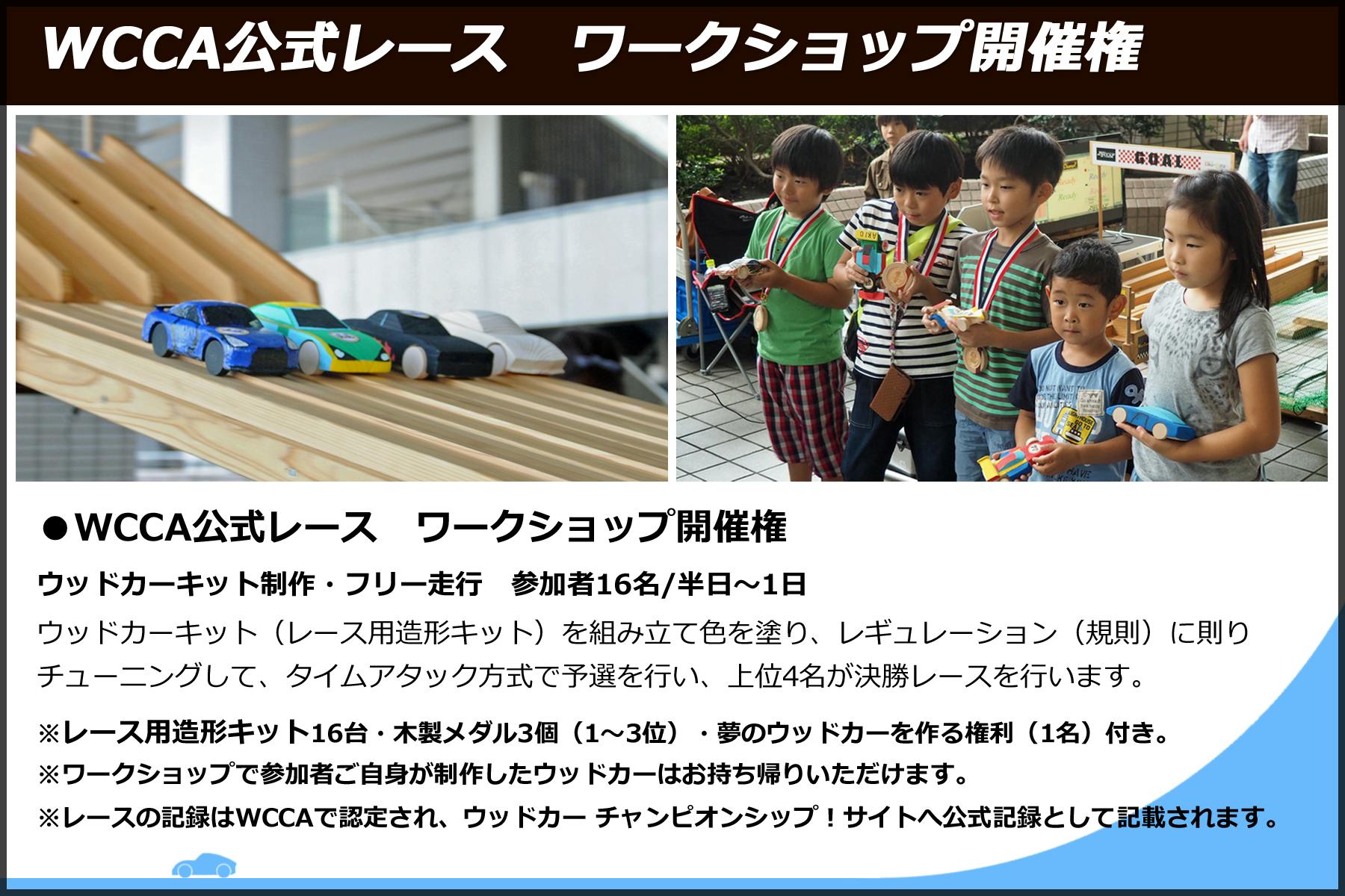 WCCA公式レース ワークショップ開催権(ウッドカーキット制作・公式レース開催16名/1日) 200,000円