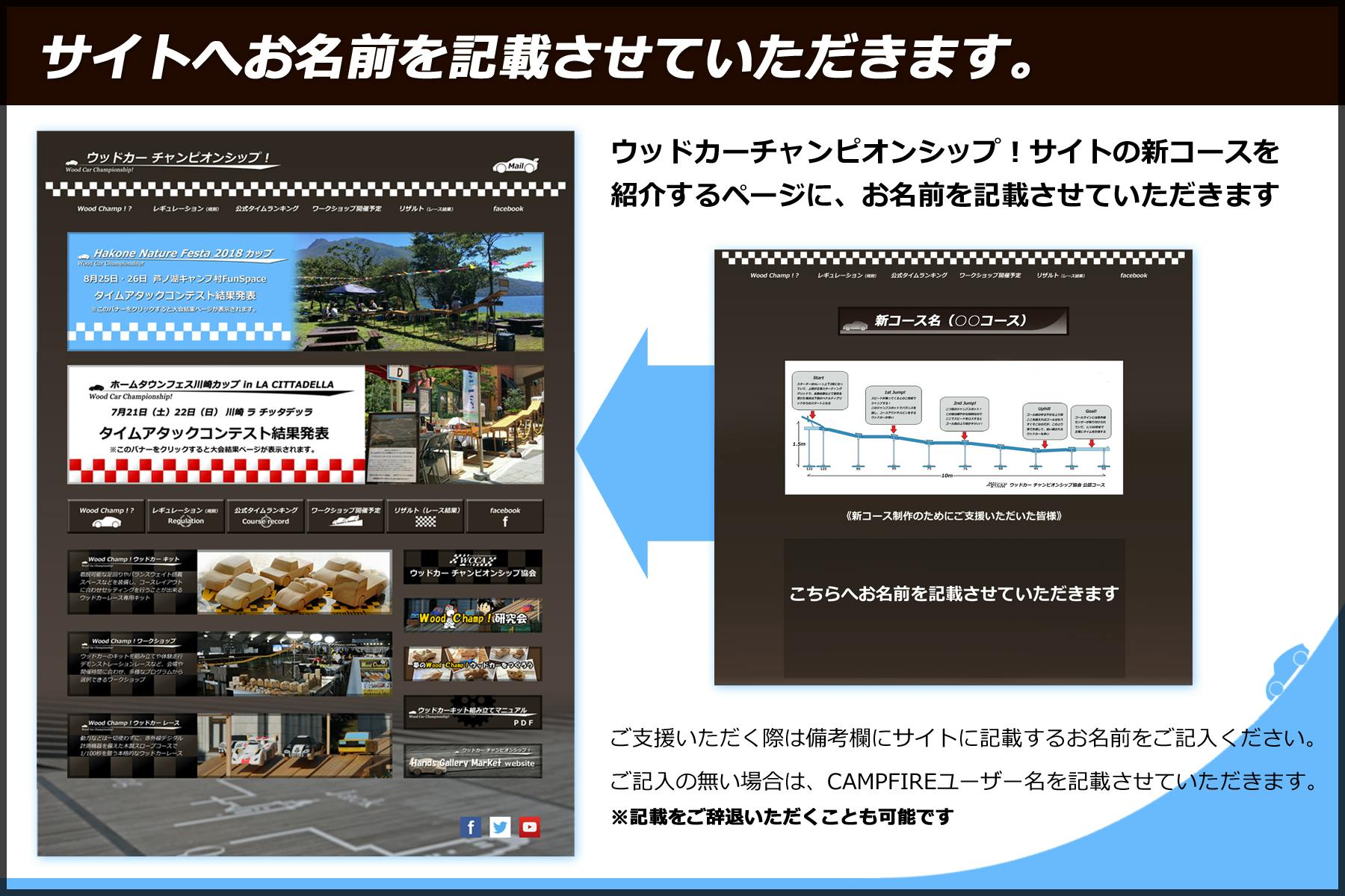 ウッドカー チャンピオンシップ!サイトの新コース解説ページへお名前を記載させていただきます。 3,000円●ウッドカー チャンピオンシップ!サイト