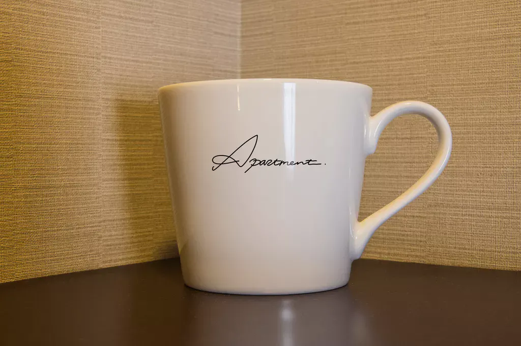 Apartmentロゴの入ったマグカップ。