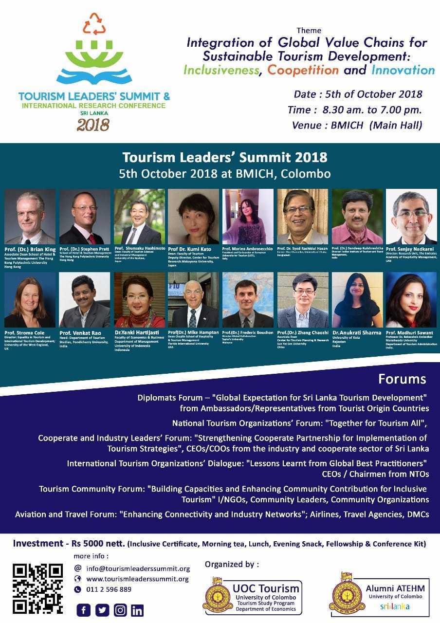 私たちは今回、Tourism Leaders’ summitに招待参加をいたします。このサミットは開催地であるスリランカの大統領を始め、世界各国から観光学の権威が集まる大規模な国際会議です。この会議を通して、私たちが日々学んでいる観光マネジメントと照らし合わせ、その成果を発表させて頂くとともに、各国の先生方、また、地元の学生との交流を通して、学びを深めたいと考えております。また、沖縄と同じ島嶼であるスリランカの観光地を視察することで、沖縄の観光発展のヒントを見つけることができればと思います。