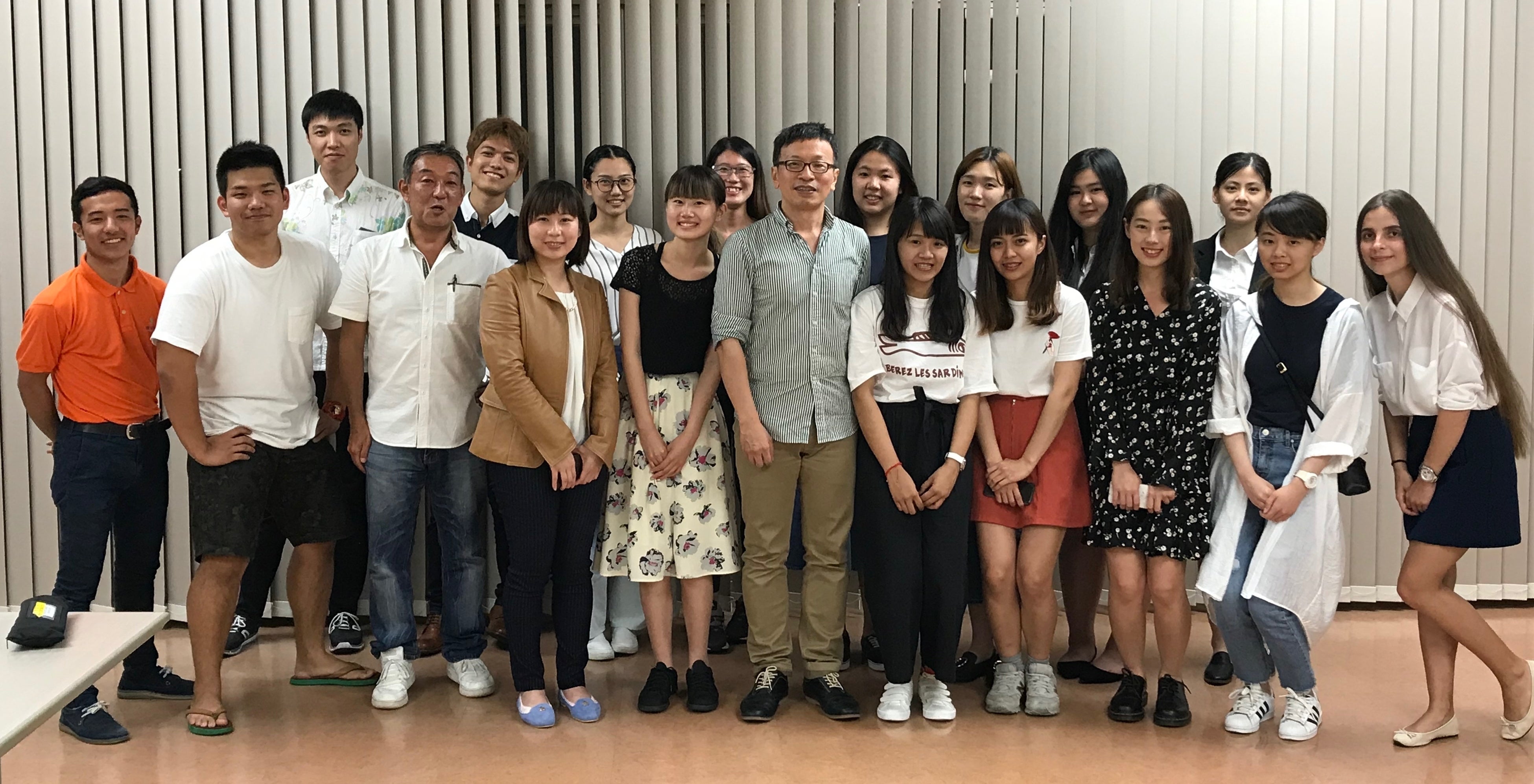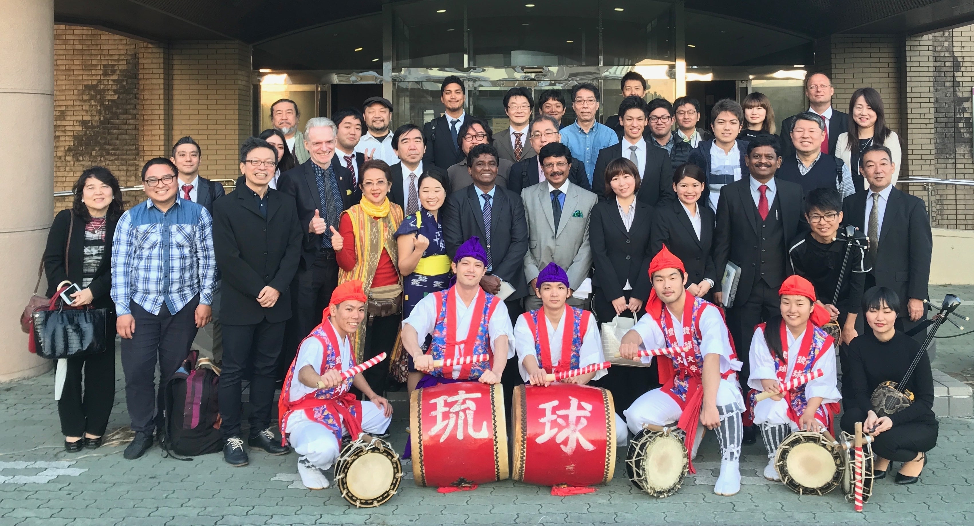 また、本年5月には、台湾の天主教輔仁大学から、蘇哲仁先生始め、大学院生10名の沖縄研修旅行のお手伝いをいたしました。蘇先生もまた、3月の会議にお越し頂いた先生方のおひとりです。大変沖縄を気に入って頂き、ぜひ学生を連れていきたいと思われ実現したものです。事前に沖縄での訪問先を手配することから始まり、空港へのお迎え、懇親会の開催、訪問先への同行等を行い、5日間ではありましたが、沖縄の魅力を体験頂きました。次は私たちが台湾を訪問いたします。