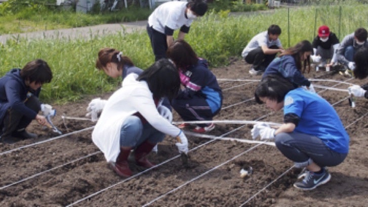 管理栄養士を育てる札幌保健医療大学保健医療学部栄養学科では、「作物を作るところから知っていることが、管理栄養士にも大事」という荒川先生の考えから、大学の敷地内で札幌大球を含む野菜の栽培を行っています。