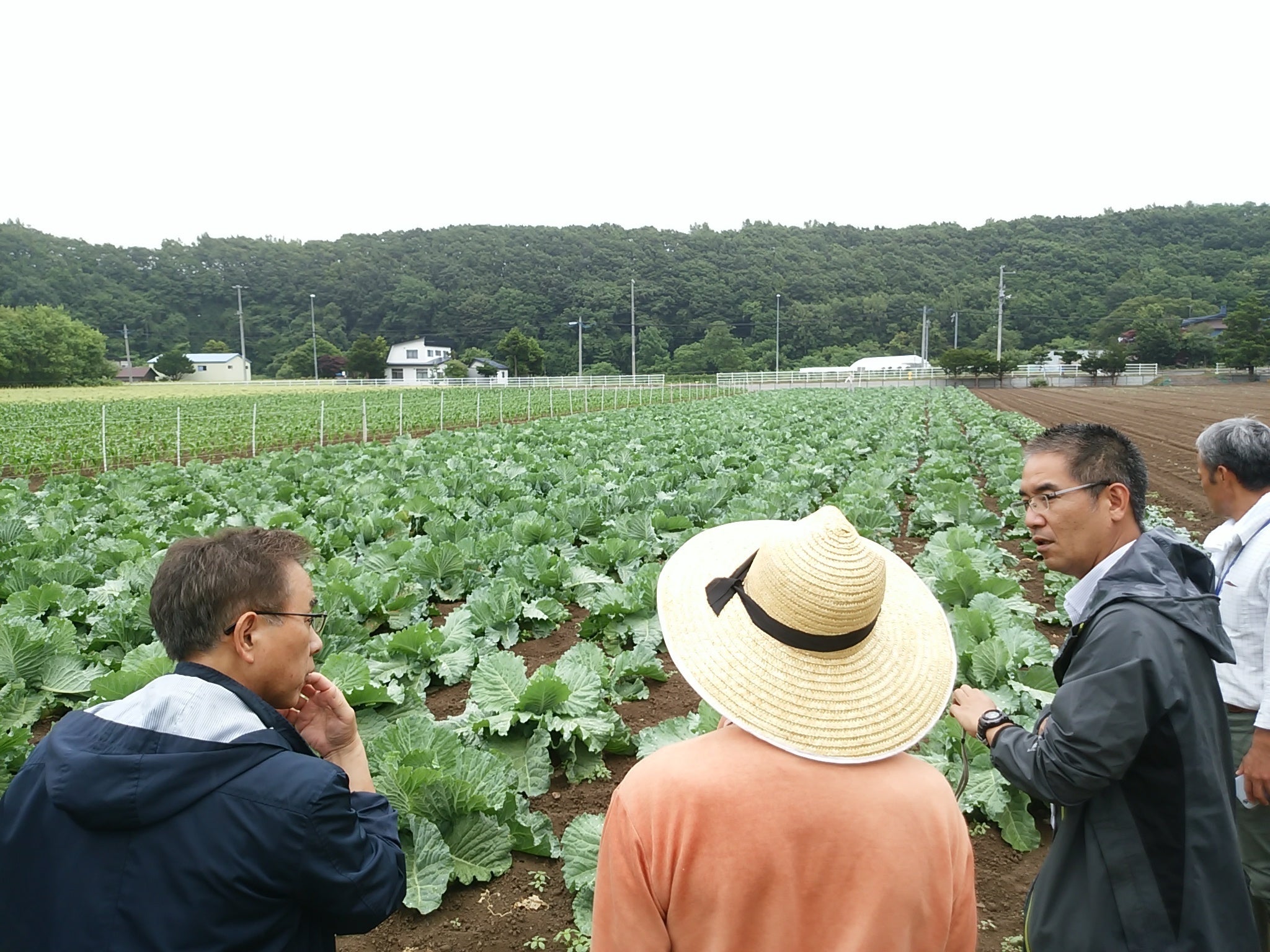 札幌伝統野菜「札幌大球」応援隊と関係者で、毎月札幌大球の生育具合を確認すべく、札幌市清田区の圃場(ほじょう)視察を行っています。最近では2018年8月10日に畑に行ってきました。