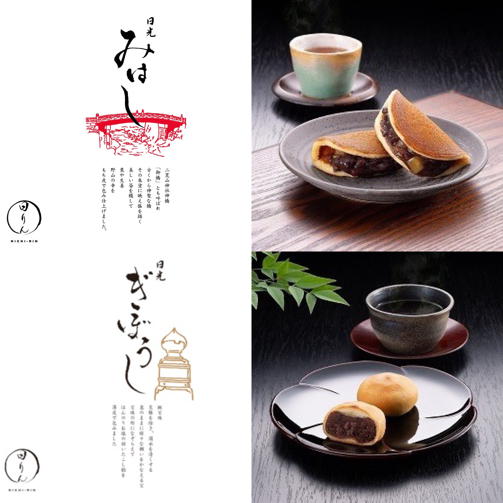 日本茶を楽しんでいただくために新たに開発した新日光銘菓「ぎぼうし」「みはし」他、