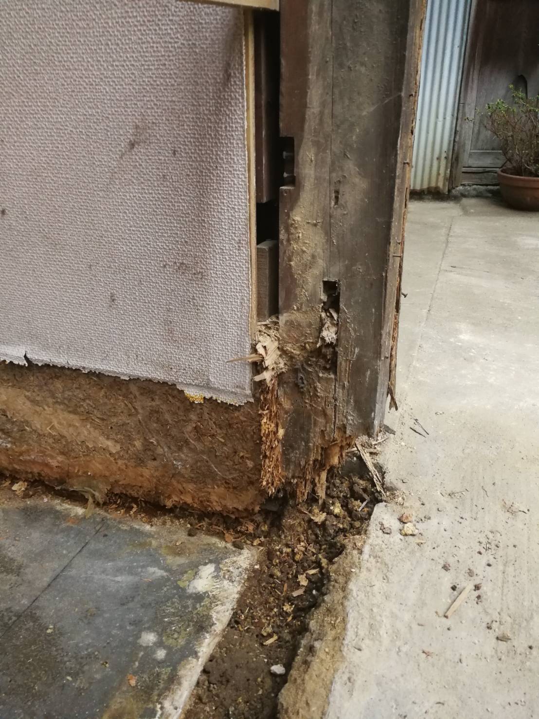 さらに柱は腐食し、少し触るだけでボロボロと崩れていきます。