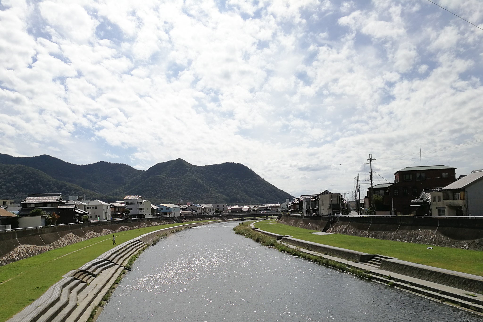 東経135度、北緯35度が交差する日本の地理上の中心地なので、「日本のへそ」と呼ばれています。山あいに囲まれ、そのくぼみに密集した町並みはまさに「へそ」の形そのもの。