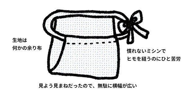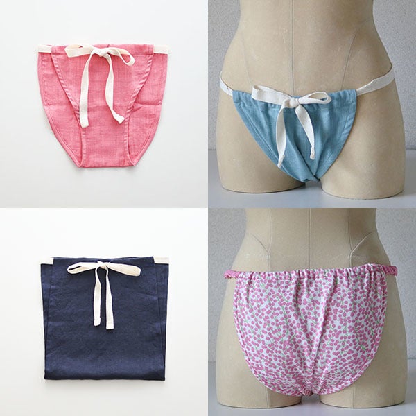 そのまま何年か過ぎ、ある時、ショーツやトランクスなどと同様に足を通してはいてヒモを結ぶタイプの「もっこふんどし」の存在を知りました。普段下着をはく動作にヒモを結ぶ手間が加わるだけなので比較的楽そうだし、ふんどしのはき心地の良さを毎日味わえるかも!と思い、実家でミシンを借りて、生地も余りものを拝借して、見よう見まねで自作してみました。
