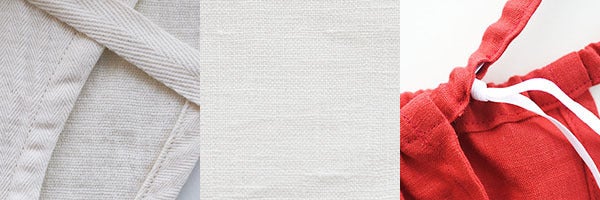 麻100%(リネン)の生地は、シャツや夏のワンピースなどに使うくらいの厚さの、サラッとして張りのある生地ですが、長く愛用するとくたっと馴染んでくるのが特徴です。麻生地というと一般的に夏向きのイメージがあるようですが、通気性・速乾性に加え、保温性もあって季節を問わず使える素材です。実際に私たち自身、冬場の汗をかきにくい時期でも麻のふんどしをはいてますが、綿と比べて寒いと思うことはありません。