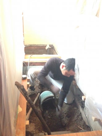 下水を通すには床をはがして、人力で土を掘り、下水管を枡までつながなければならないのですよ。