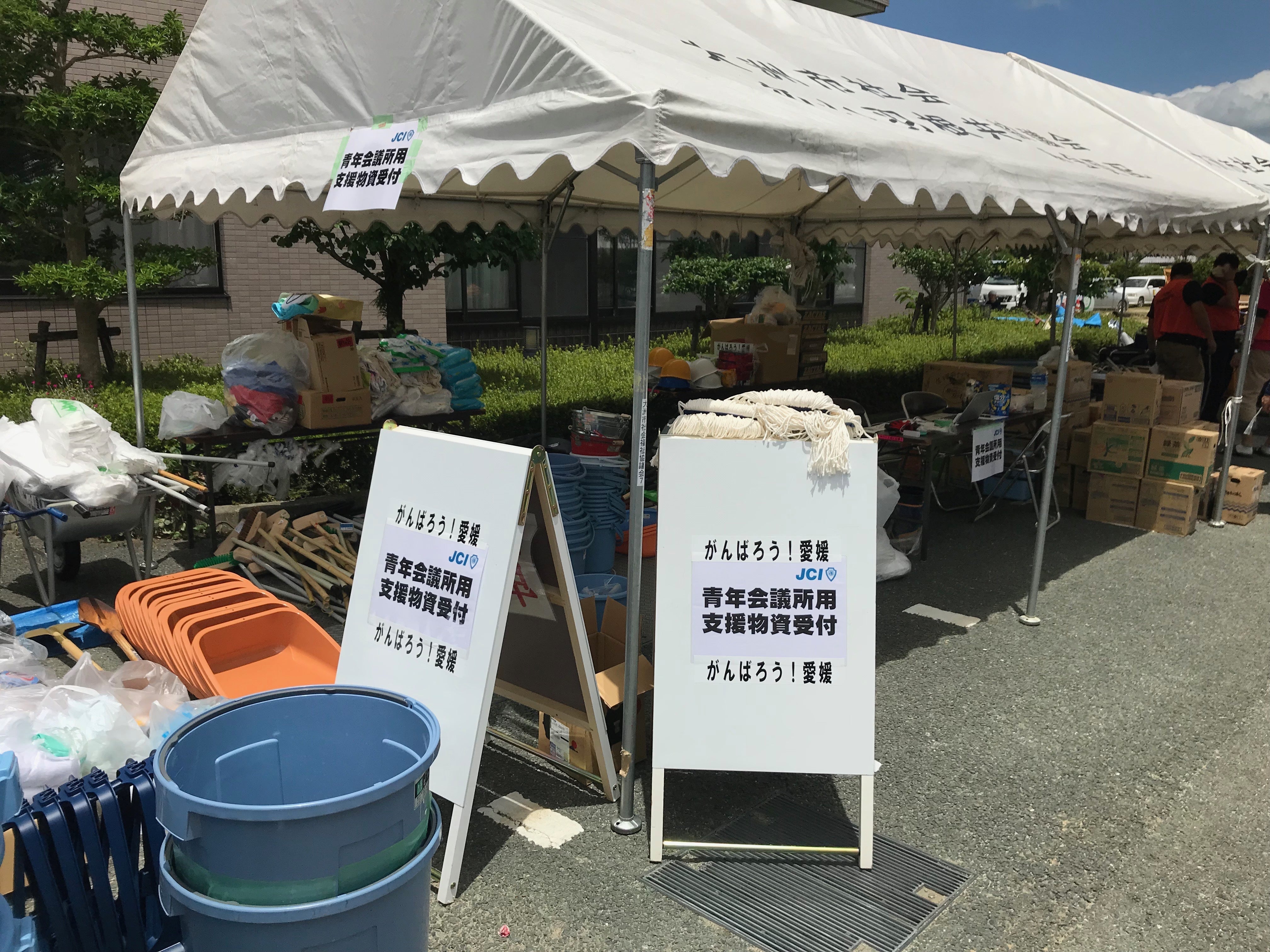 災害発生からの活動といたしましては、発生の翌々日から大洲市内の瓦礫の撤去。大洲市のボランティアセンターへの資機材の提供と人道支援。50台の高圧洗浄機の提供。飲み水や支援物資の提供等を行ってまいりました。また四国各地の青年会議所の同志の方々からもたくさんの支援を頂きました。