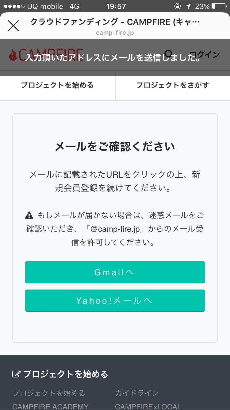 ③メールアドレスを入力し、「確認メールを送信」ボタンを押すと下記の画面になります!