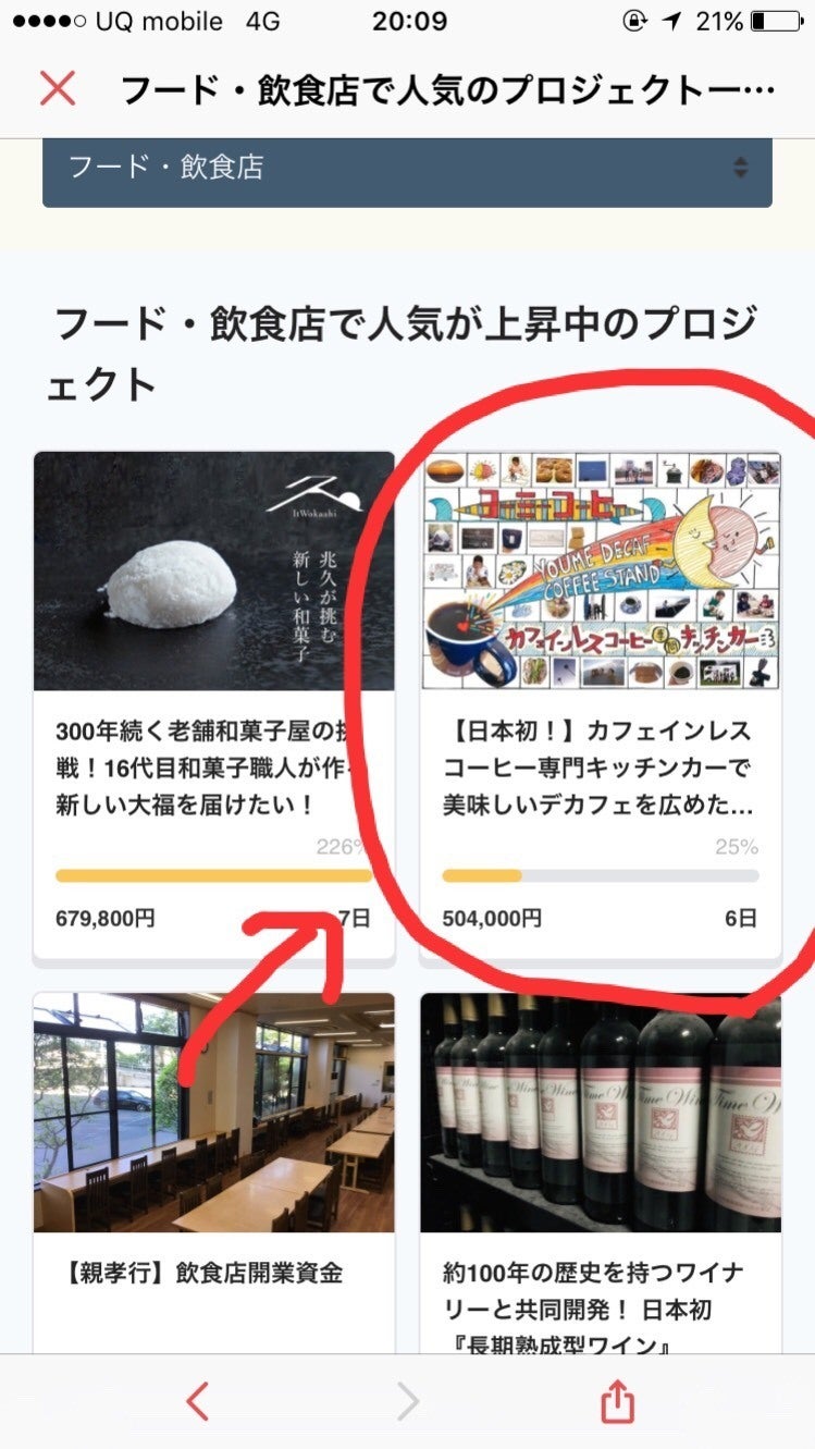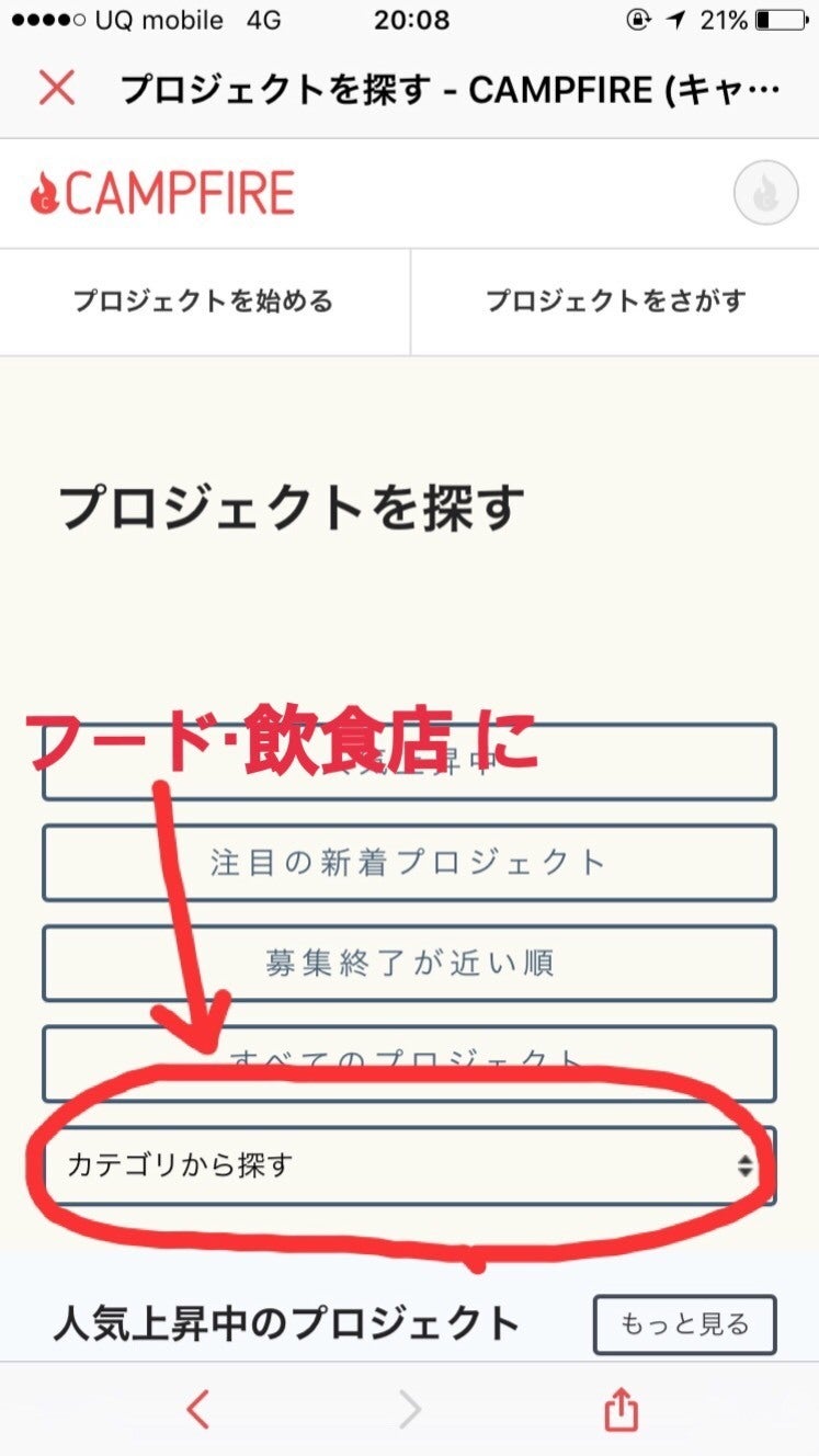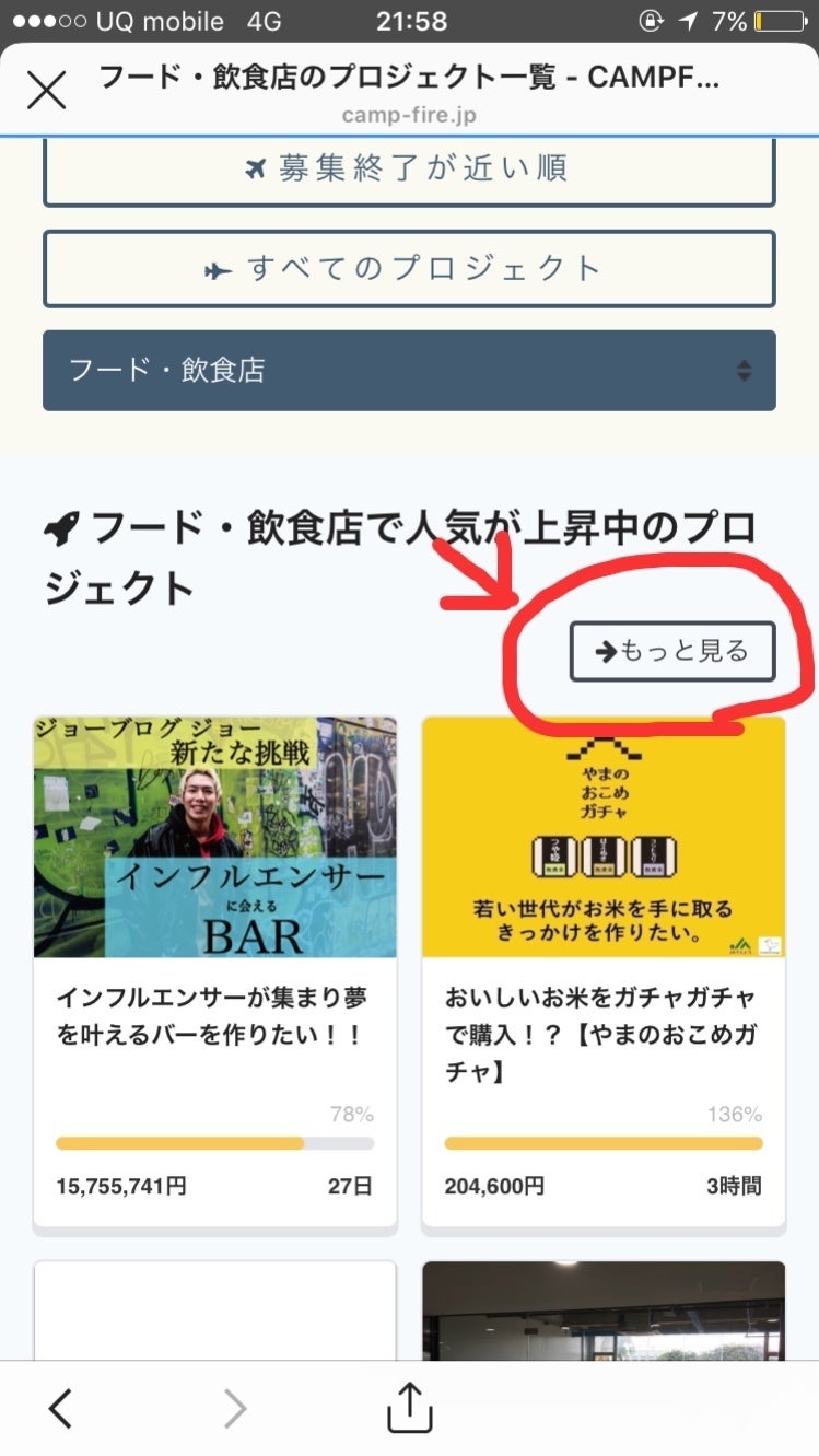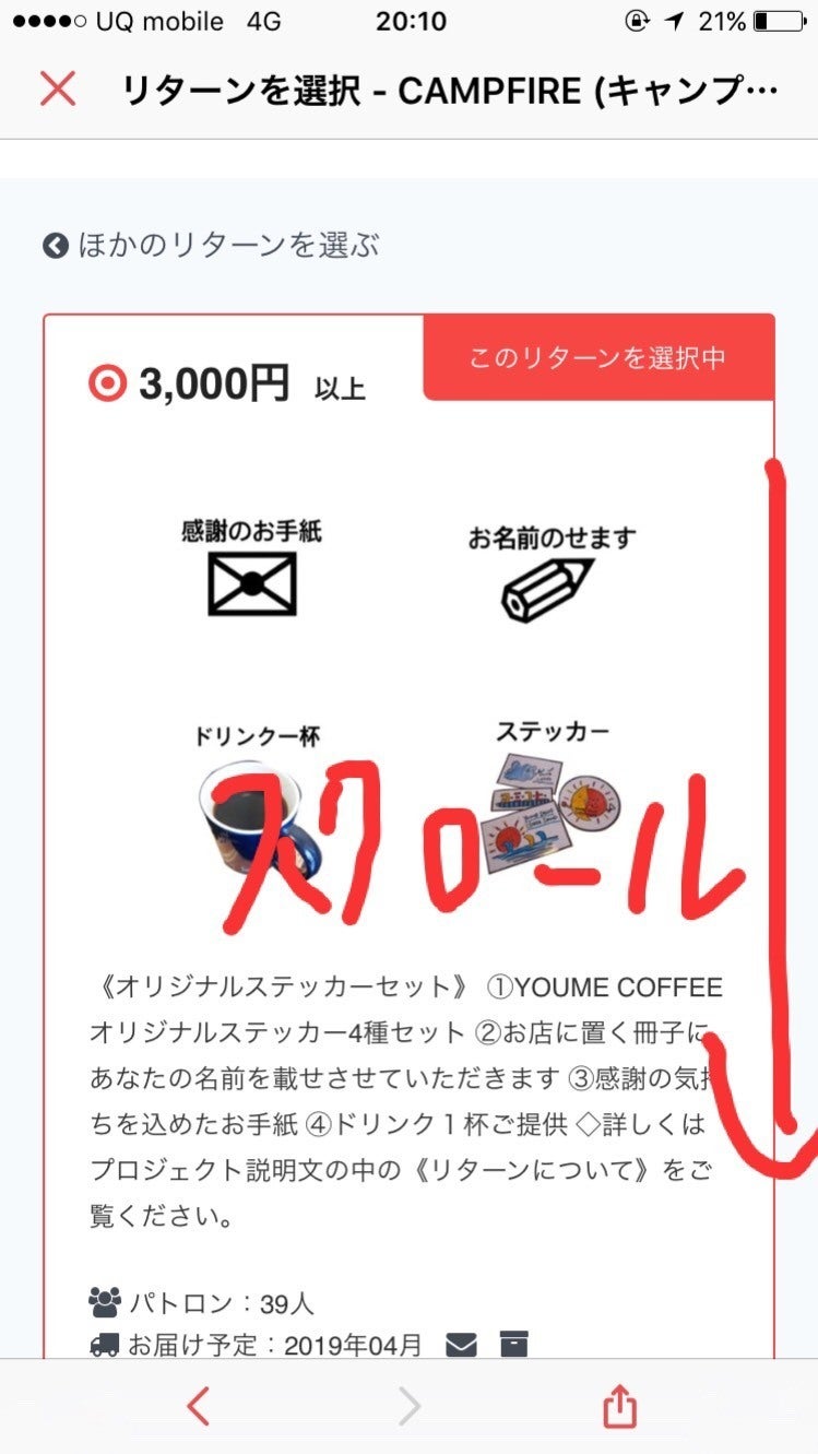 ⑦プロジェクトページにとんだ後、希望のリターンを選択する。