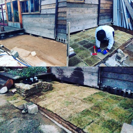 新発田市にある、斑鳩建築さんよりもらう製材機を置く場所に芝を貼りました。