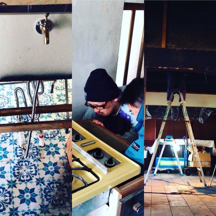 店舗に、水道・ガス・電気の設備屋さんが来てくれ段々とお店っぽくなってきました。ご自慢の黄色いガス台は、NHKで放送していた”レイチェルの小さなキッチン”に憧れ、マッチで火を点ける物です。可愛いです!!