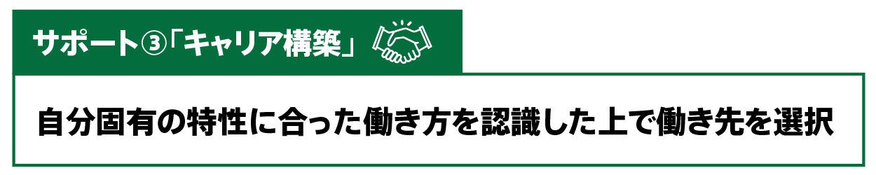 だからこそ、KBCの本質は以下3つのサポートに凝縮されます。つまり、①自己を理解し、②自分が学ぶべきスキルを選択し、③自分と相性の良い働き方や職場を見つけ出す、ということです。