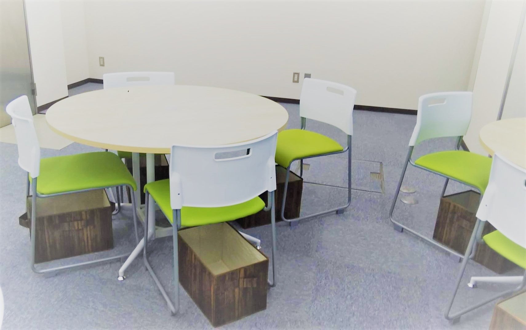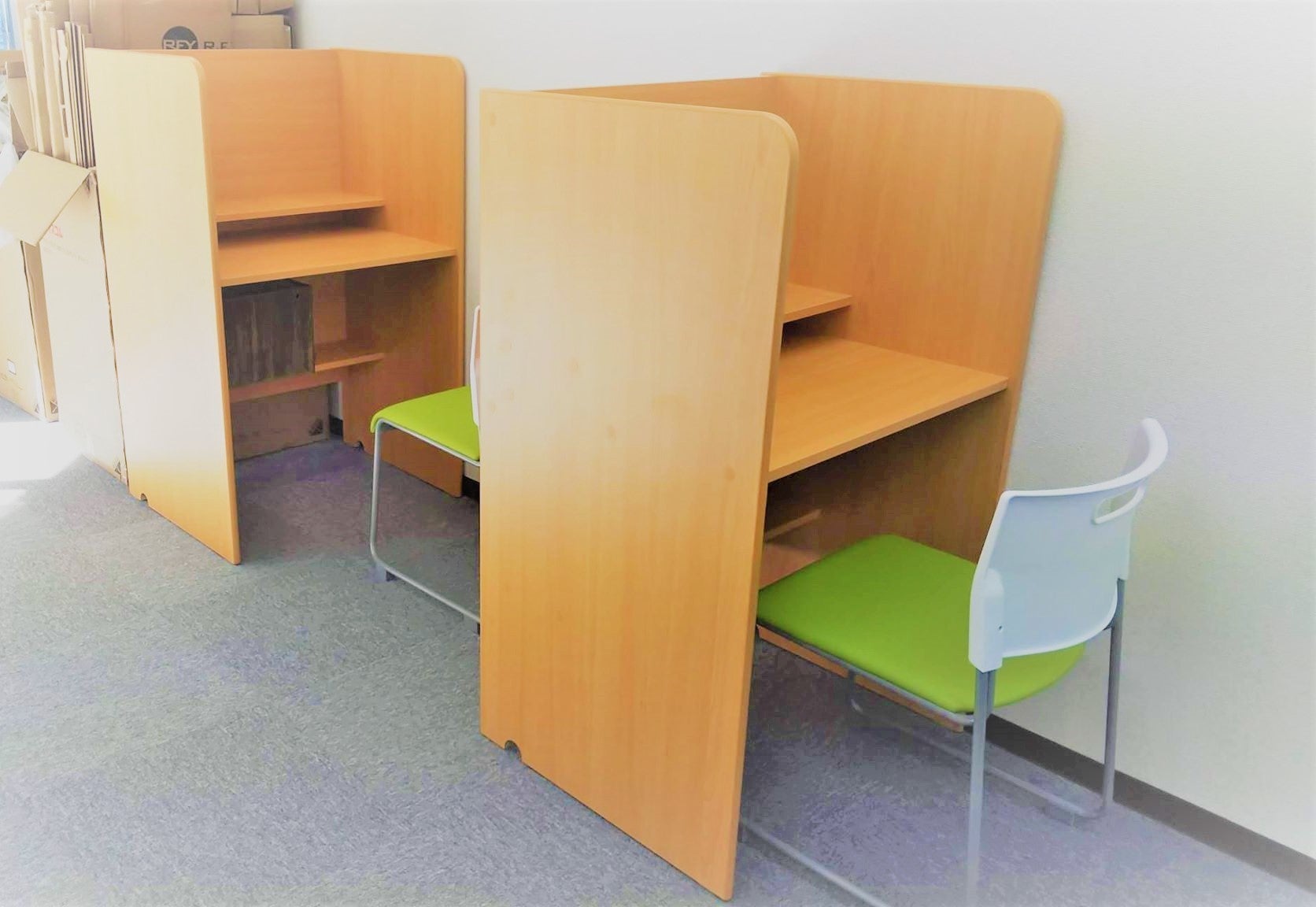 ▲自習スペース(奥の段ボールは正式オープンまでに片づけます!)