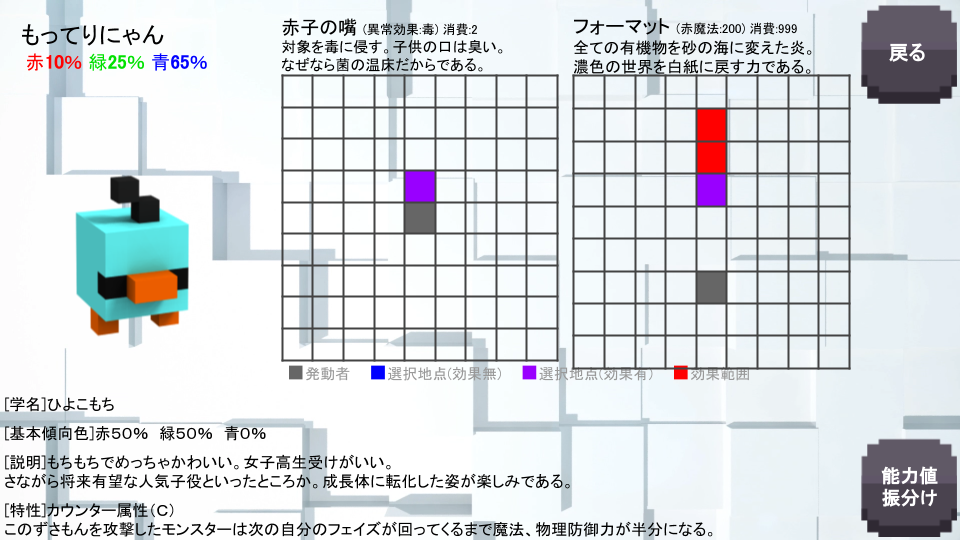 尚、自身の属性の色(傾向色)によって、外見上の体色が決まります。
