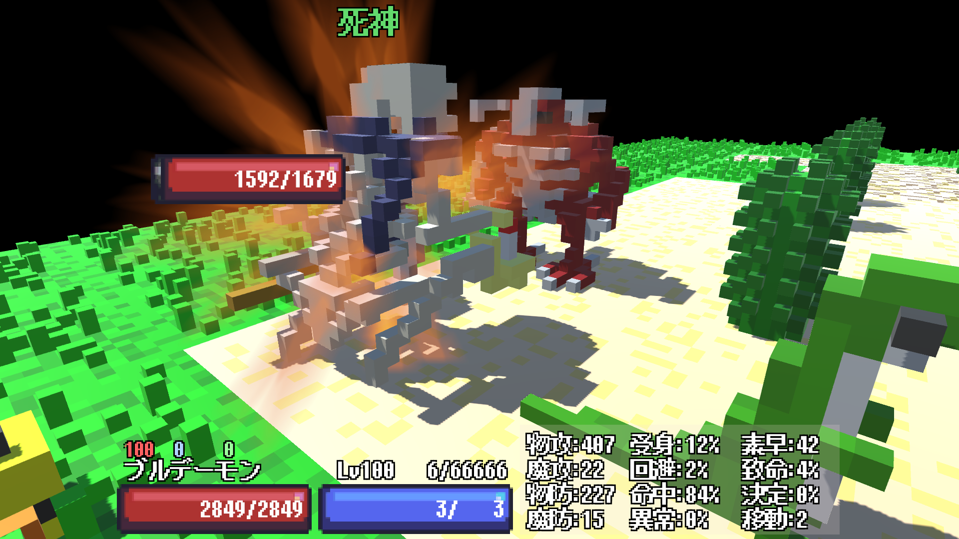 ずさもんでは、戦闘中のレベルアップによって、「能力振分けポイント」が得られ、