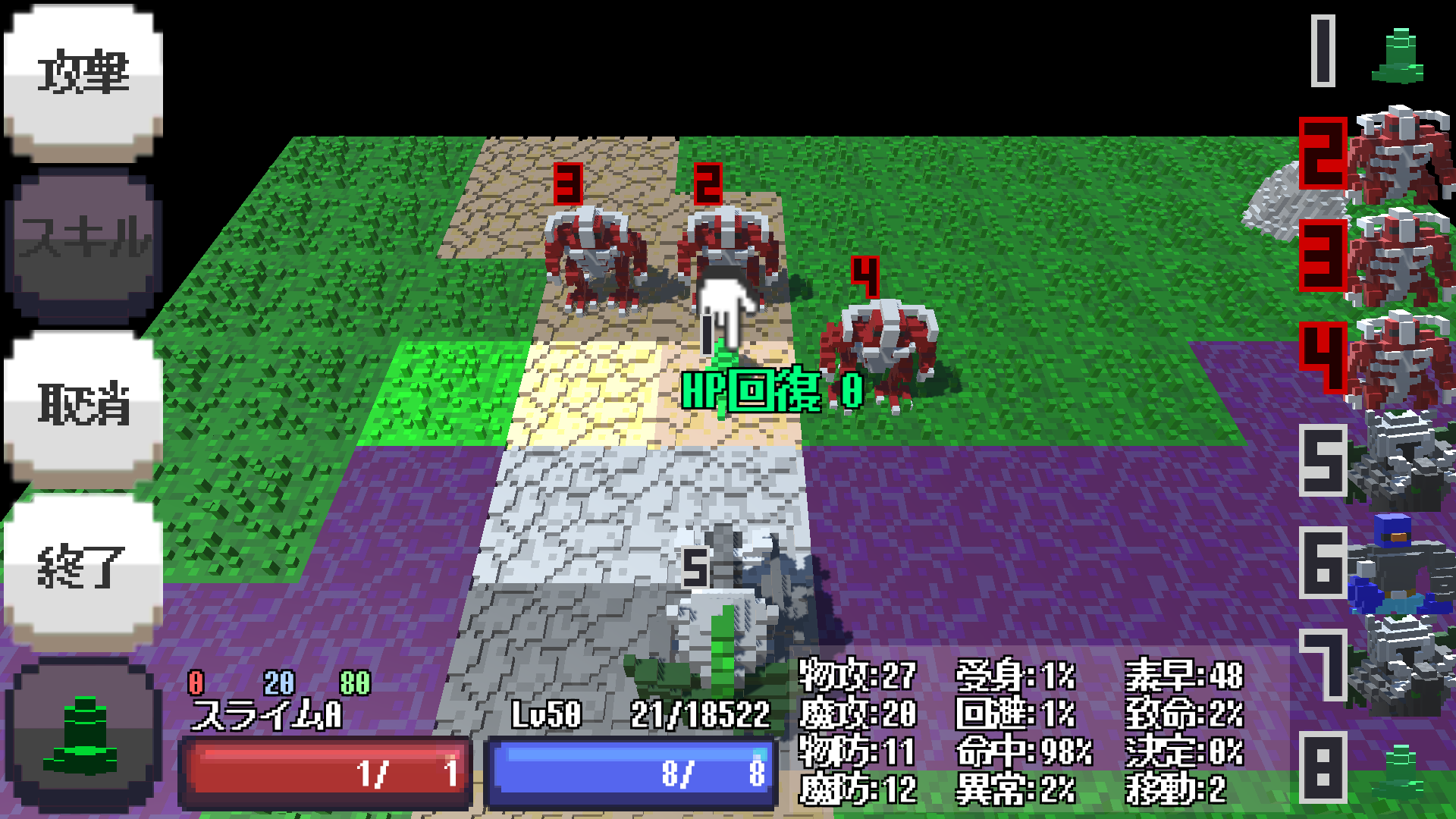 自分のフェイズが回ってくるたびに、自動回復するという単細胞生物にありがちなチート級特性です。