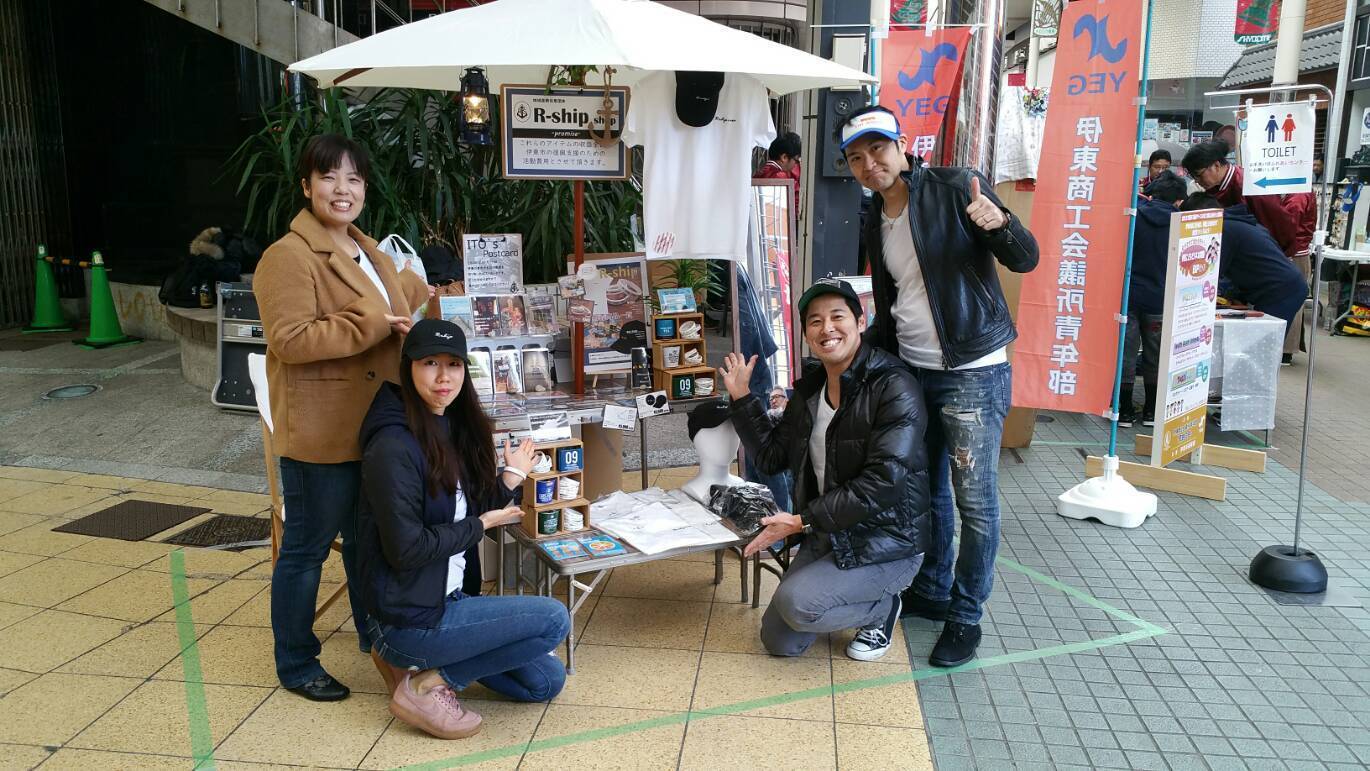 ☝2018年11月25日、伊東の商店街にて行われたマーケット『サンデーキネマーケット』に出店しました!画像はR-shipスタッフたちです。