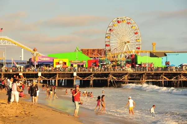 ☝アメリカのロサンゼルス・サンタモニカ。桟橋の上には遊園地が。ショッピングもできます。