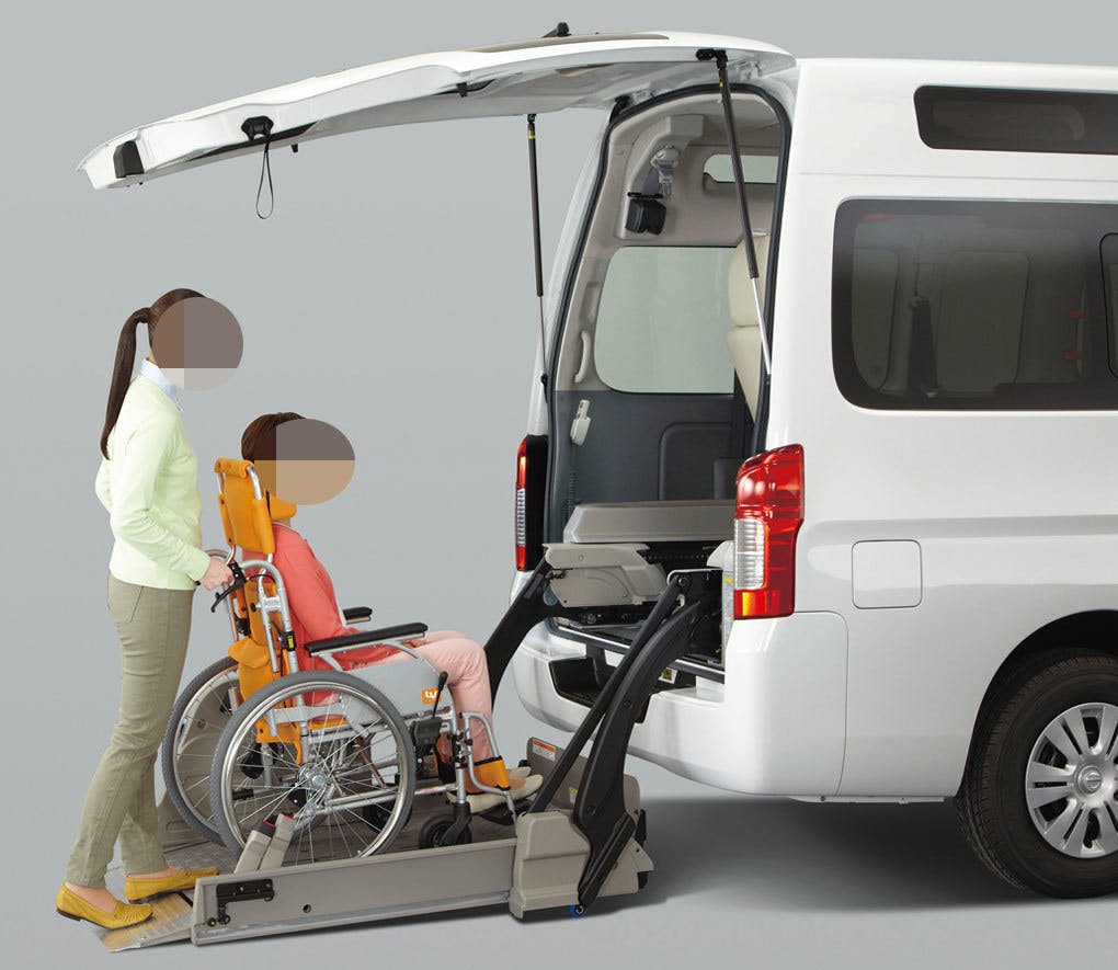いま知的障害者施設で月に一度事務のボランティアに行っているのですが、そこの事務局長さんからnissanのNV350の、4台でなく2台の大型電動車イスが乗っかるタイプがいいと思うよと現物を見せられながら教えてもらいました。