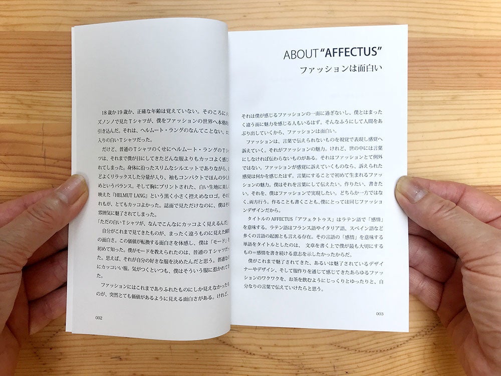 僕は「ファッションを読む」をコンセプトに、「AFFECTUS(アフェクトゥス)」というタイトルでファッションテキストをSNSと自費出版の書籍で発表しながら、ファッションライティング活動を行っています。