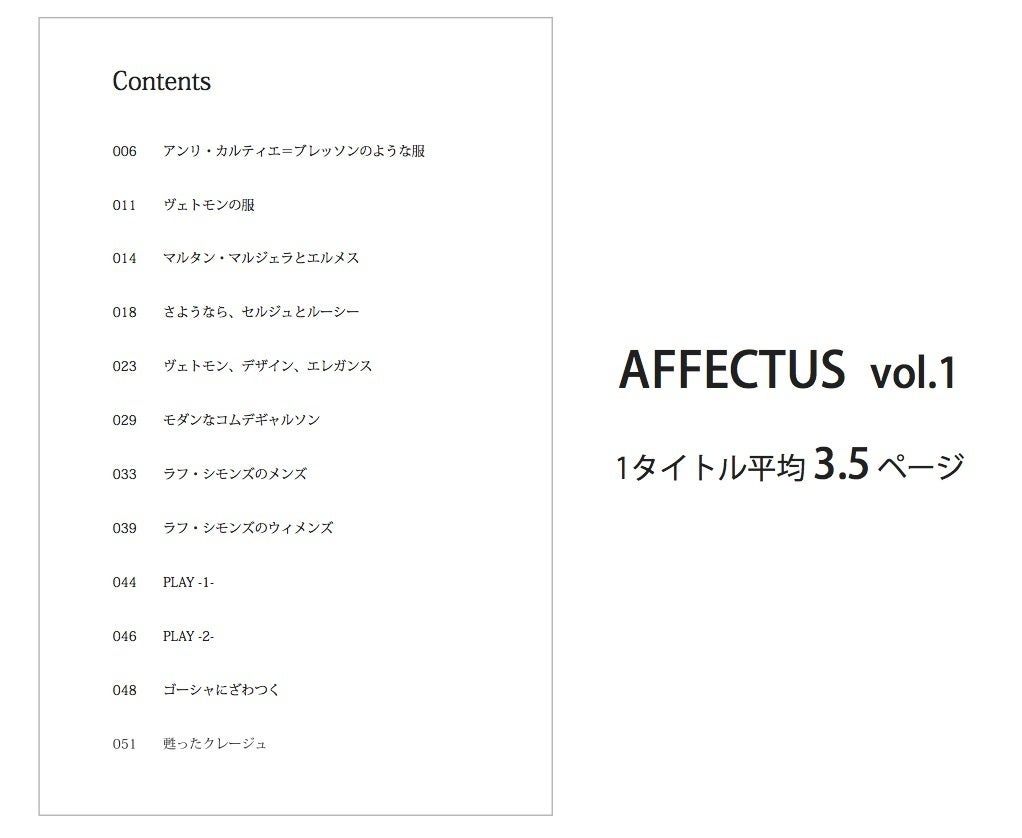 そのモードの謎に、「ファッションを読む」をコンセプトに迫っていくのが「AFFECTUS(アフェクトゥス)」です。