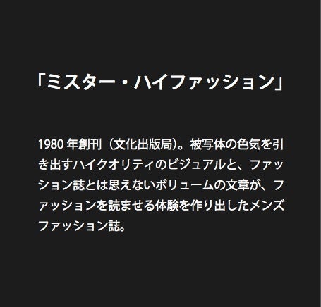 モードの魅力が詳細に語られた美しい文章を、一文字一文字貪るように読んでいた僕は、気がつくとモードのカッコよさがわかり始めていたのです。