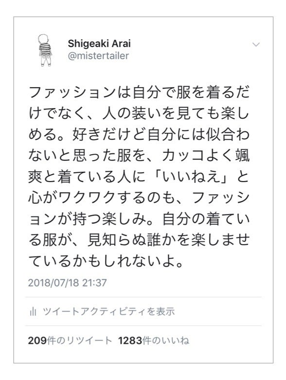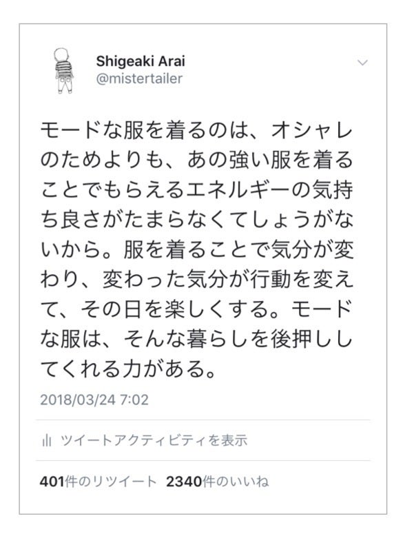 Twitter(@mistertailer)では、ファッションツイートをカジュアルにたくさんつぶやいています。